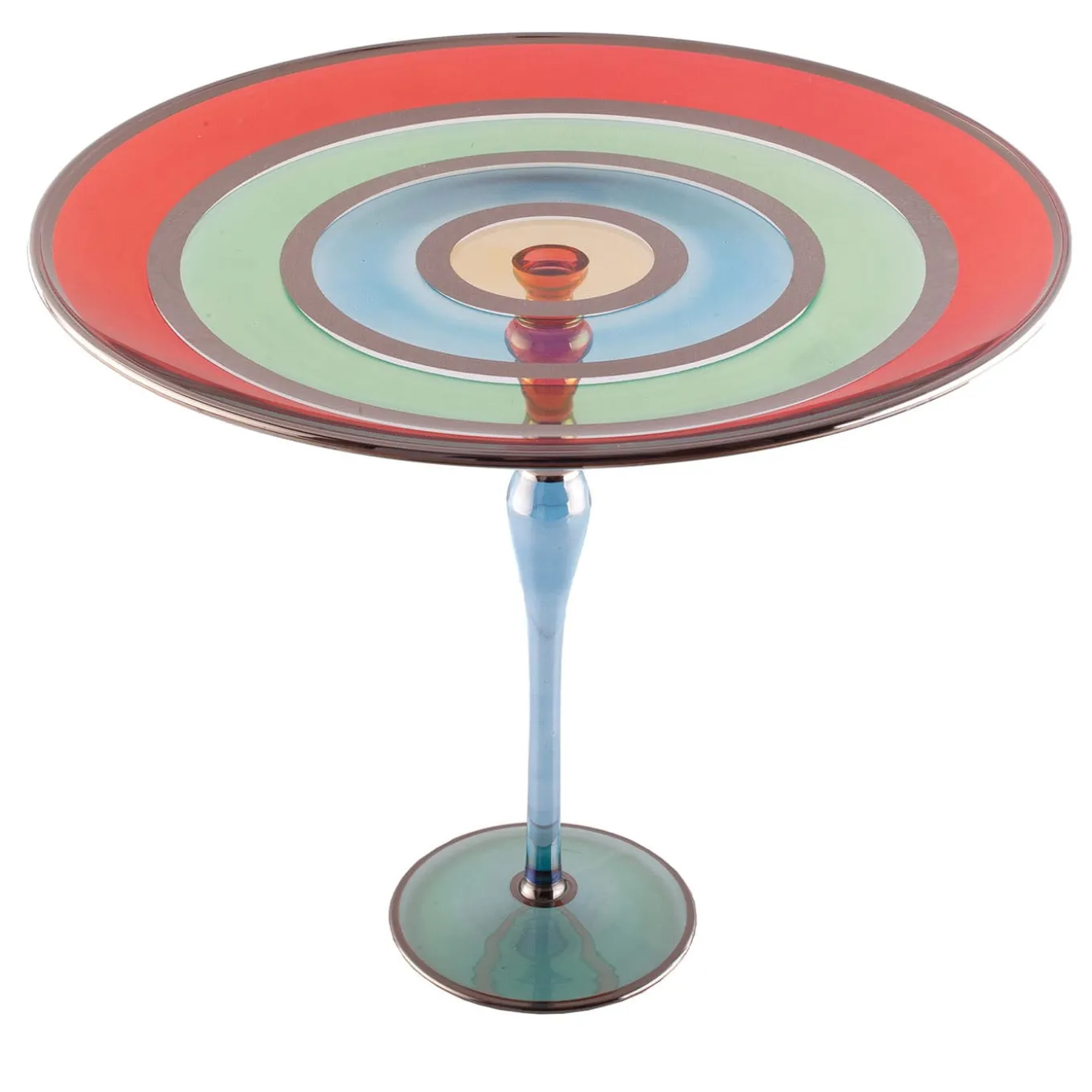 An intriguing contrast of circles in different colors enhanced by platinum rings reveals the Olympics inspiration behind this piece, aptly part of the Olimpia Collection. Also an homage to Milan’s planned 2026 Winter Olympic Games, it flaunts a graceful silhouette with a slim and sinuous stem that sustains a stunning plate measuring 28cm in diameter. Other versions are in the Artemest catalog.