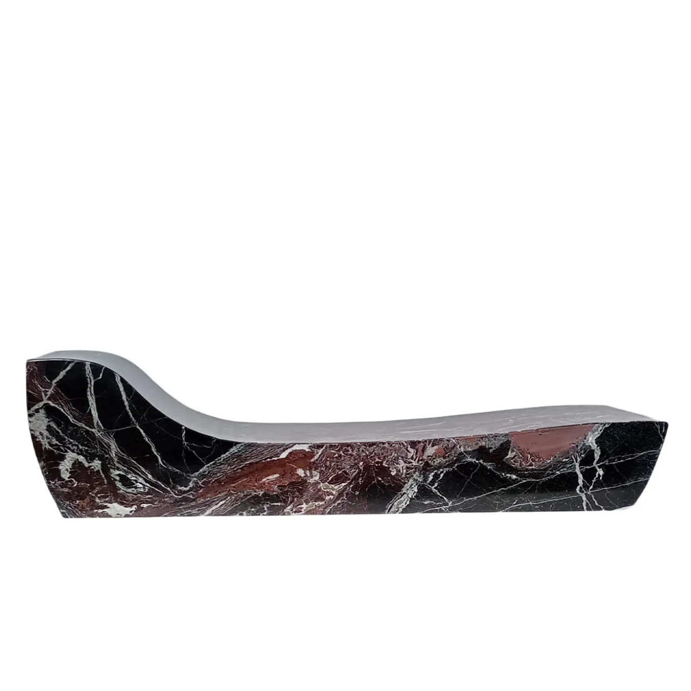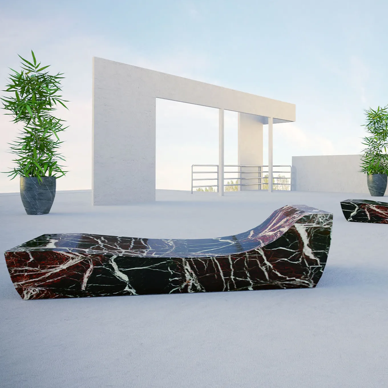This sculptural chaise longue is a luxurious piece cleverly fashioned of prized lightweight marble for offering unexpected lightness without renouncing the stunning look of fine marble. Its archetypal shape means to enhance this artful contrast, while the resulting lightness favors arrangement in indoor and outdoor spaces alike. Please contact the Concierge for available variants.