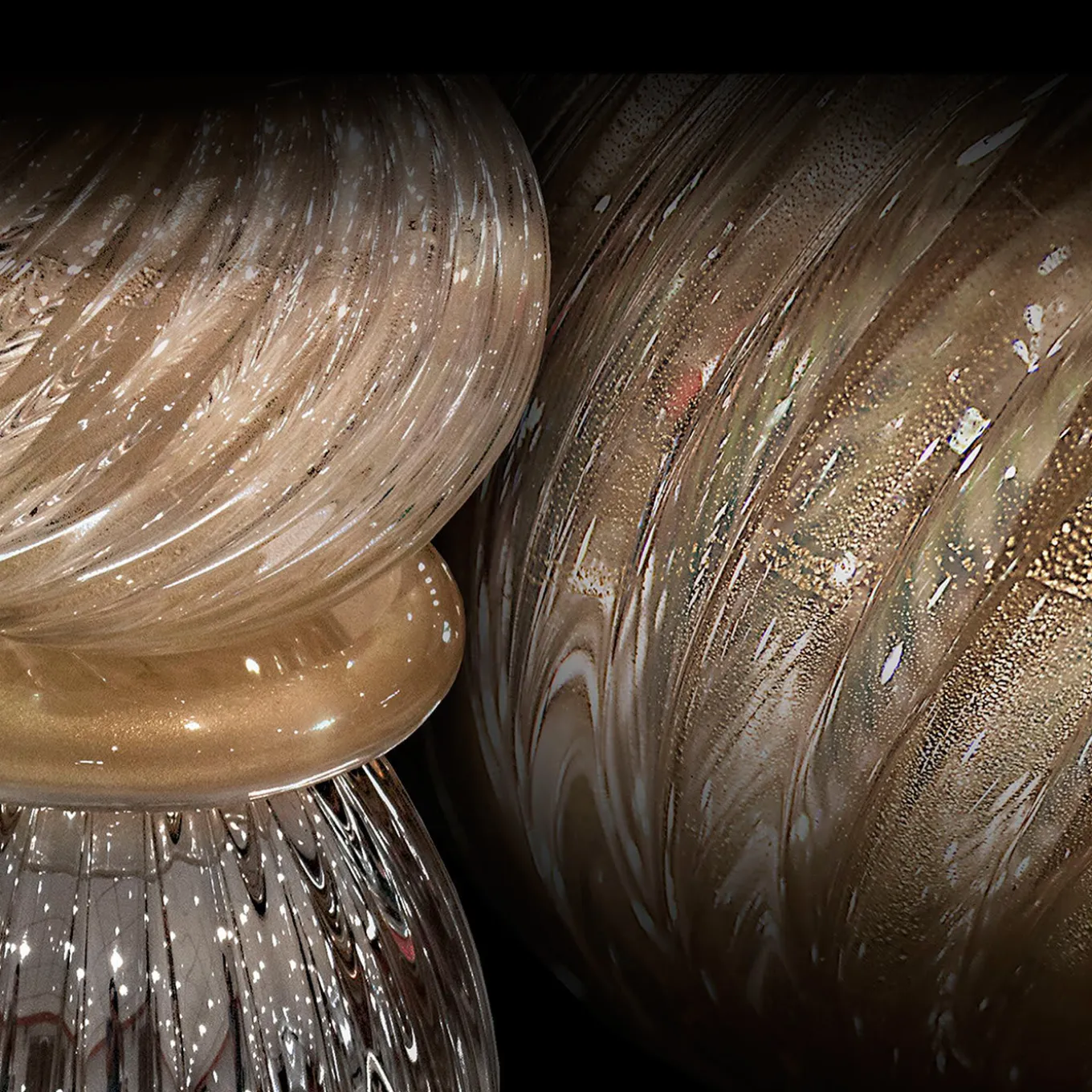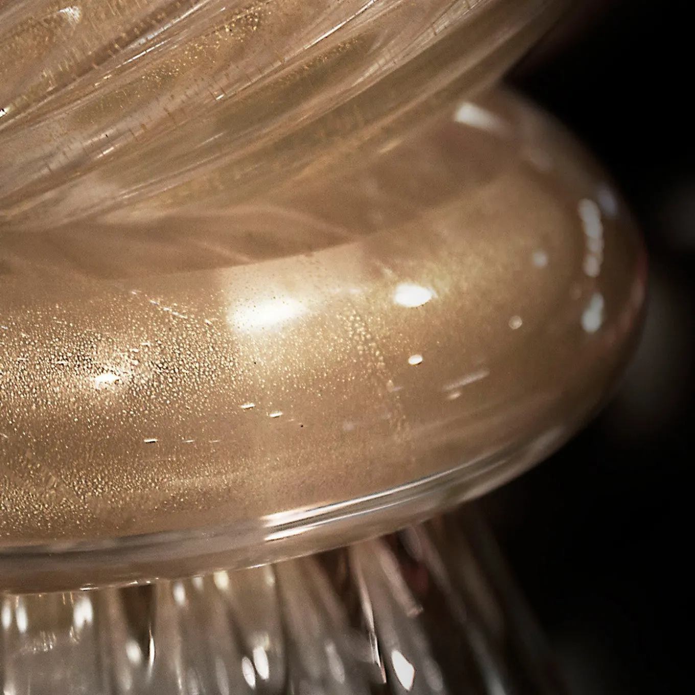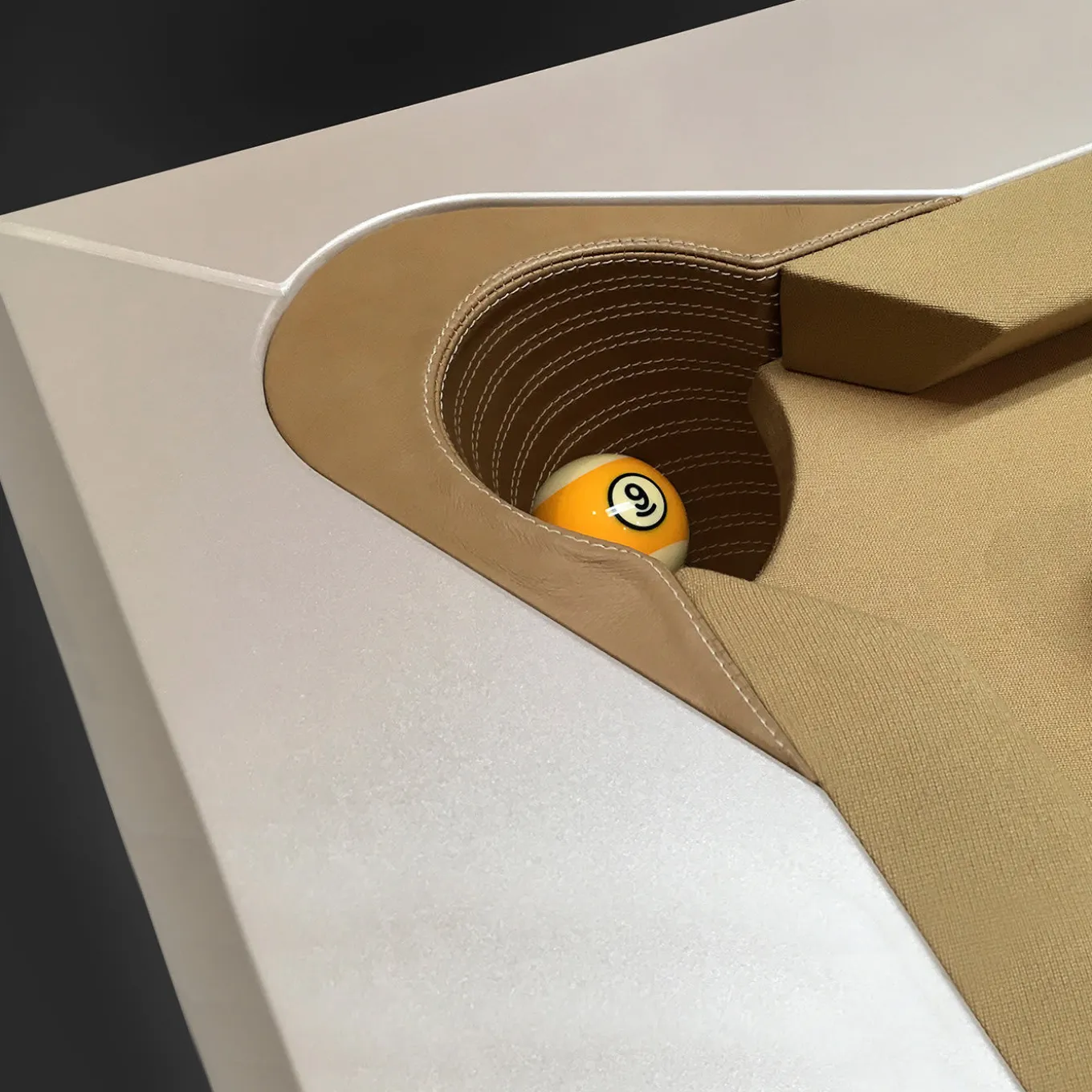 This exclusive 9ft billiard table with a 254 x 127 playing surface features an unparalleled mix of art and technology. The unique diamond cut pearl-lacquered ivory white top is supported and embellished by six Murano crystal bases, each composed by a spherical golden glass crystal form and a transparent white stem.