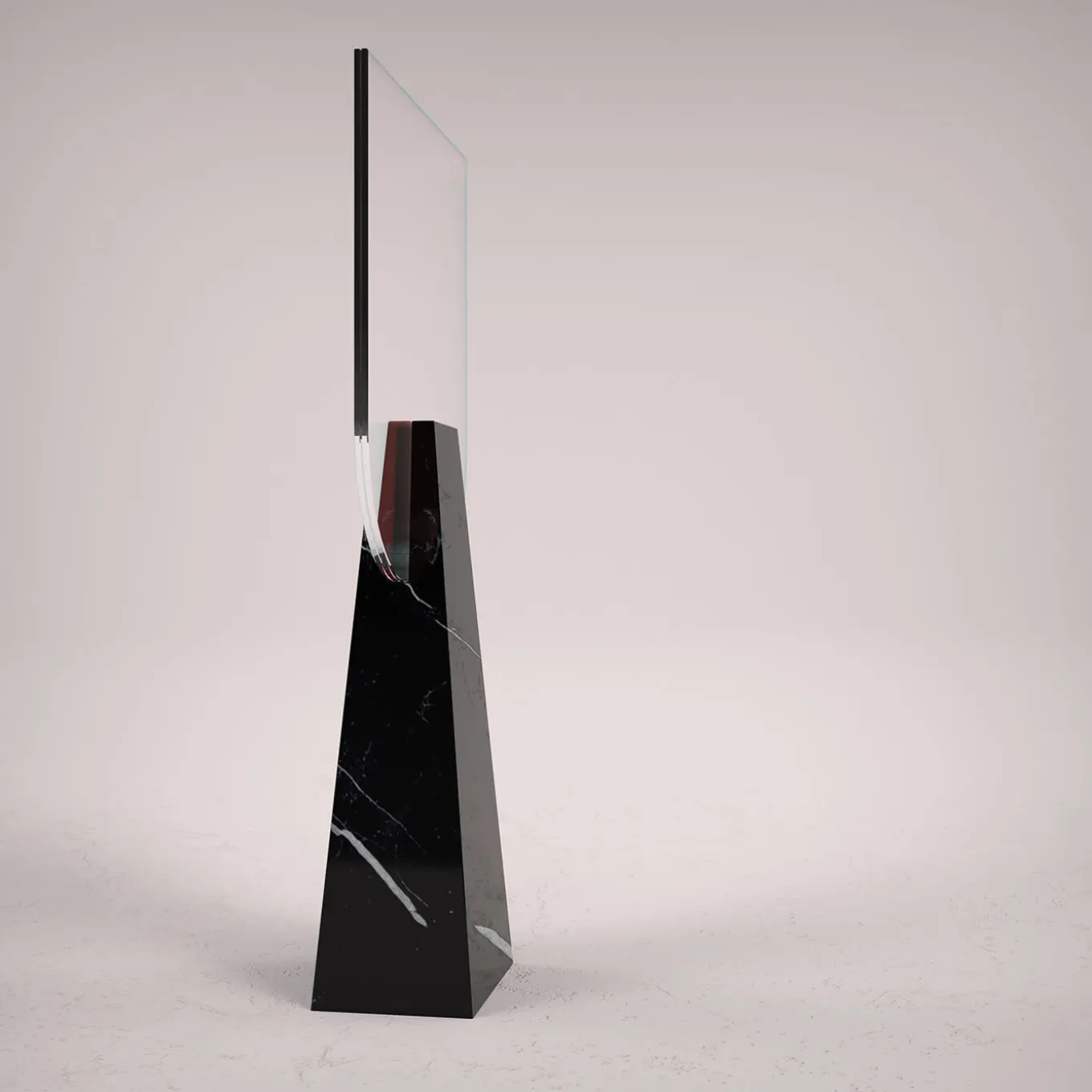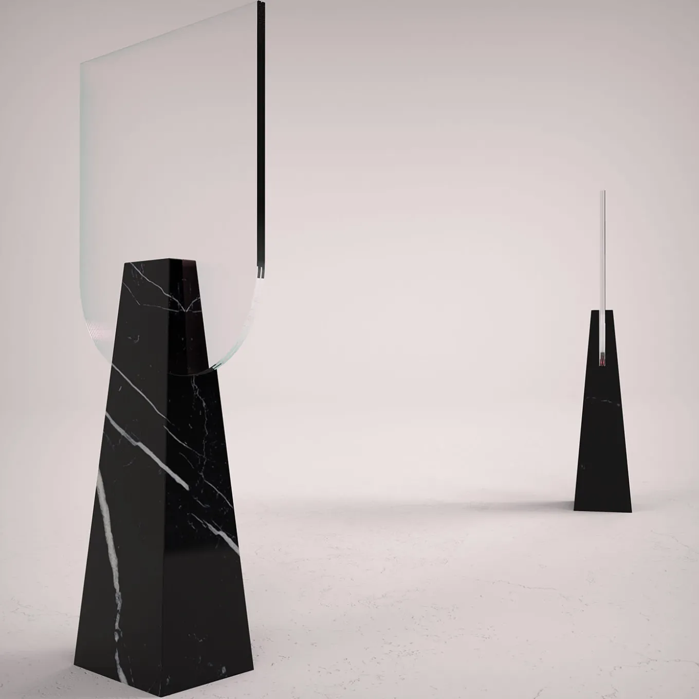 A sophisticated encounter between neoclassic and contemporary influences, this table mirror will make for a superb addition to vanity tables. The hand-shaped double-sided mirror is set into a rigorously sculpted and precious monobloc base fashioned of Black Marquina marble base, finally perfected by a smooth finish. Each piece is numbered and made to order.