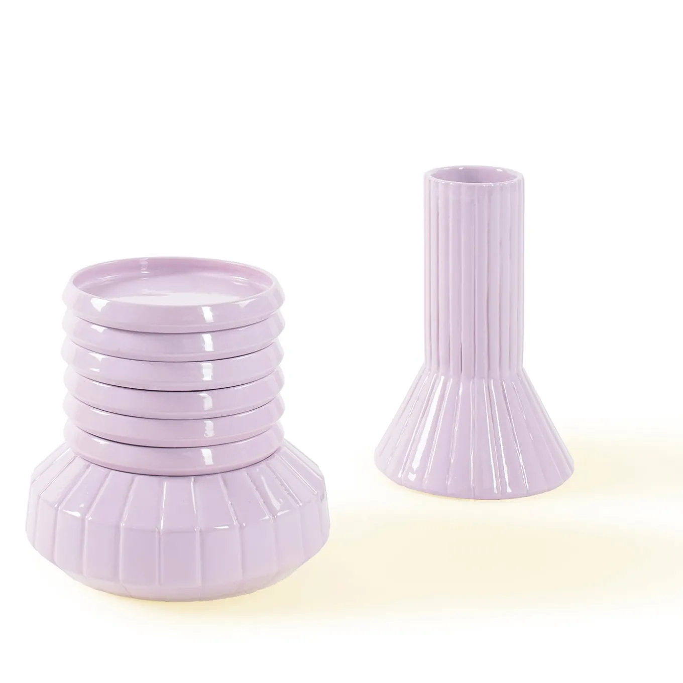 Stackability, crucial in post-war design, maximizes function in compact spaces. Today, it embodies essentialism by prioritizing core values and waste reduction. Bread and wine symbolize discipline and optimism. The stackable service thus becomes a table totem, a whole that composes a figure in its parts, encouraging communal sharing, a timeless ritual that nourishes both body and spirit, reflecting human connection through food.