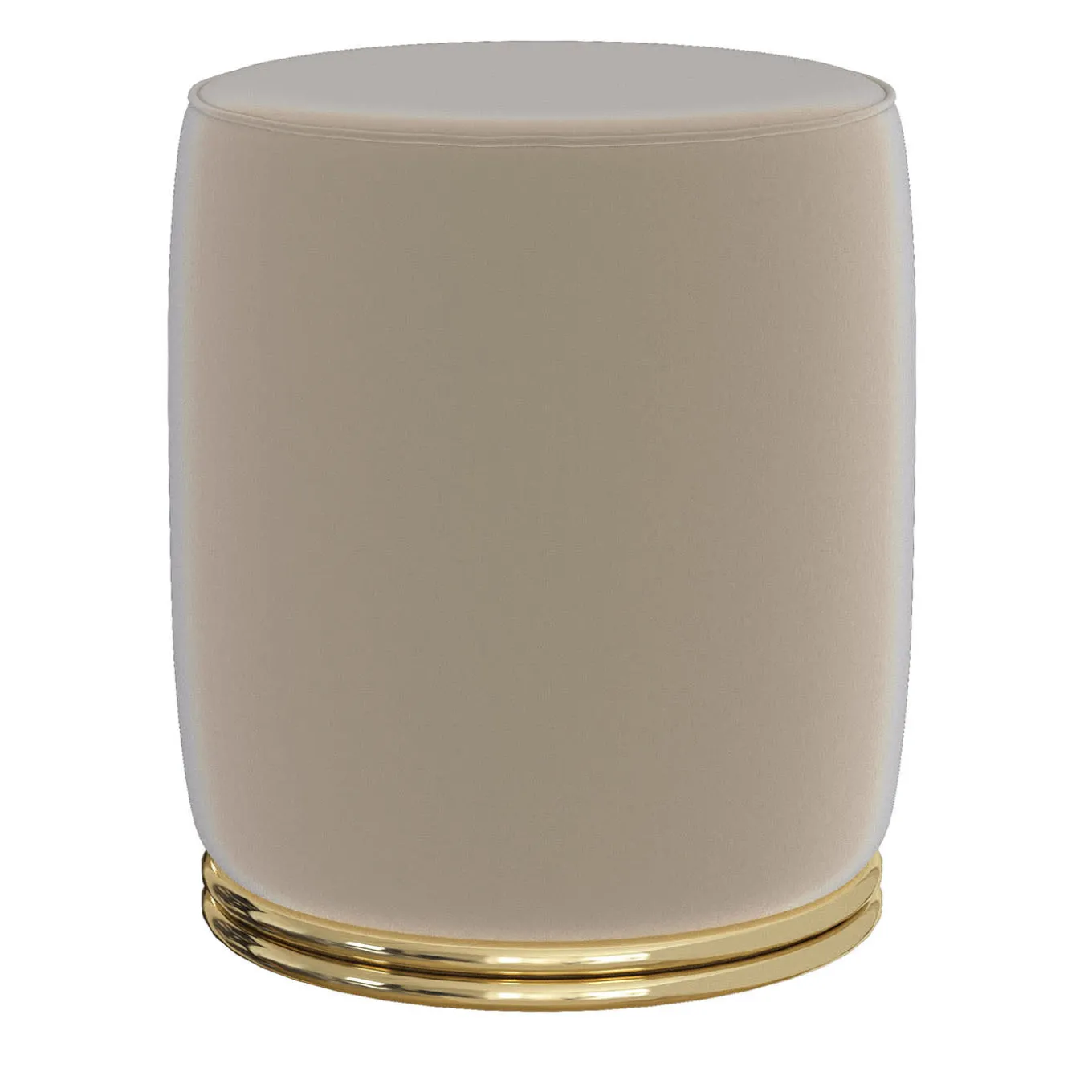 Displaying timeless elegance and refinement, this gorgeous pouf from the Iconic Collection of Deco-inspired designs will make for a sophisticated accent to a contemporary interior. Crafted of solid wood enriched with a gold-leaf-decorated ring, padded and upholstered with a beige cover. Please consult the Concierge for further information.