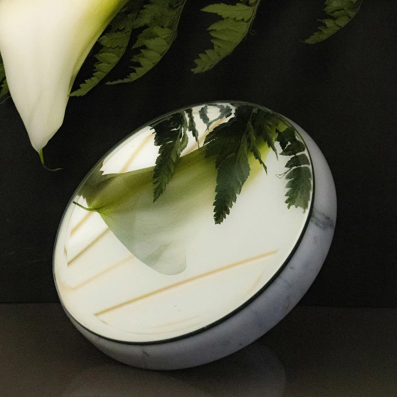 An essential piece of functional design, this round makeup mirror showcases a sturdy and elegant frame skillfully handcrafted of matte-finished white Carrara marble. Enriched with a small marble handle on the back, this piece is both stylish and timeless.