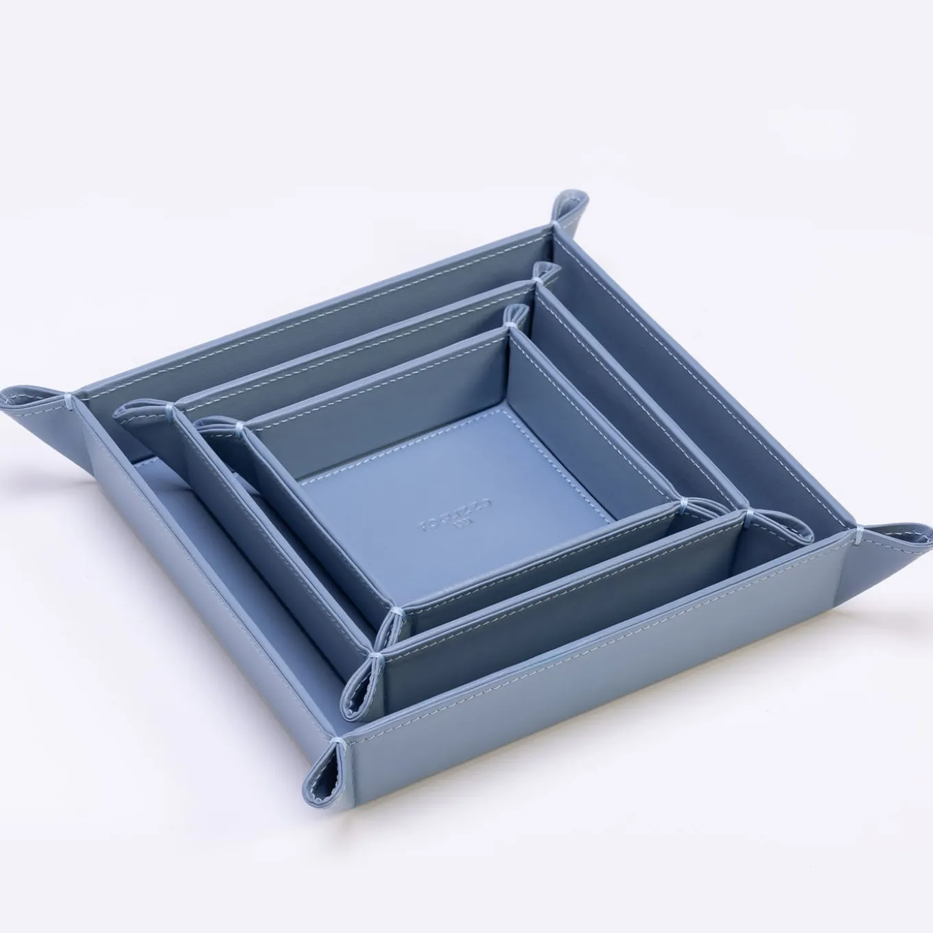 The versatile Picasso leather vide poches, expertly crafted in Foglizzo leather, embody an elegant sophistication. Placed on either an entryway console or a bedroom dresser, they keep loose change, jewelry, and small items organized for the next use. Available in three different sizes and square-shaped, they are stackable, allowing for the creation of unique and captivating compositions. Please contact the Concierge for further information.