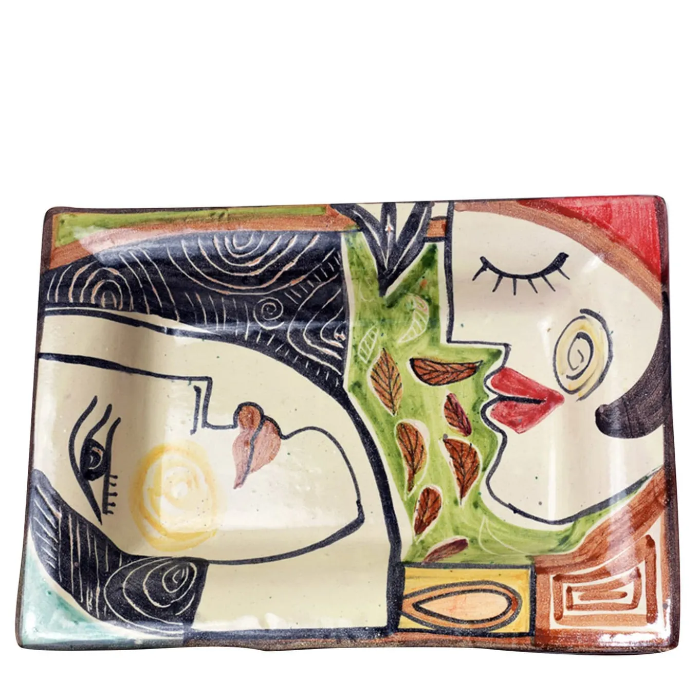 Brimming with artistic flair, this ceramic vide-poche is an exquisite tribute to Picasso’s utterly bold and expressive art. Human profiles are traced with intense brushstrokes and decorated with vibrant enamels for a captivating visual effect. The entire artisan crafting process behind the piece implies the presence of unpredictable traits that are a testament to its uniqueness.