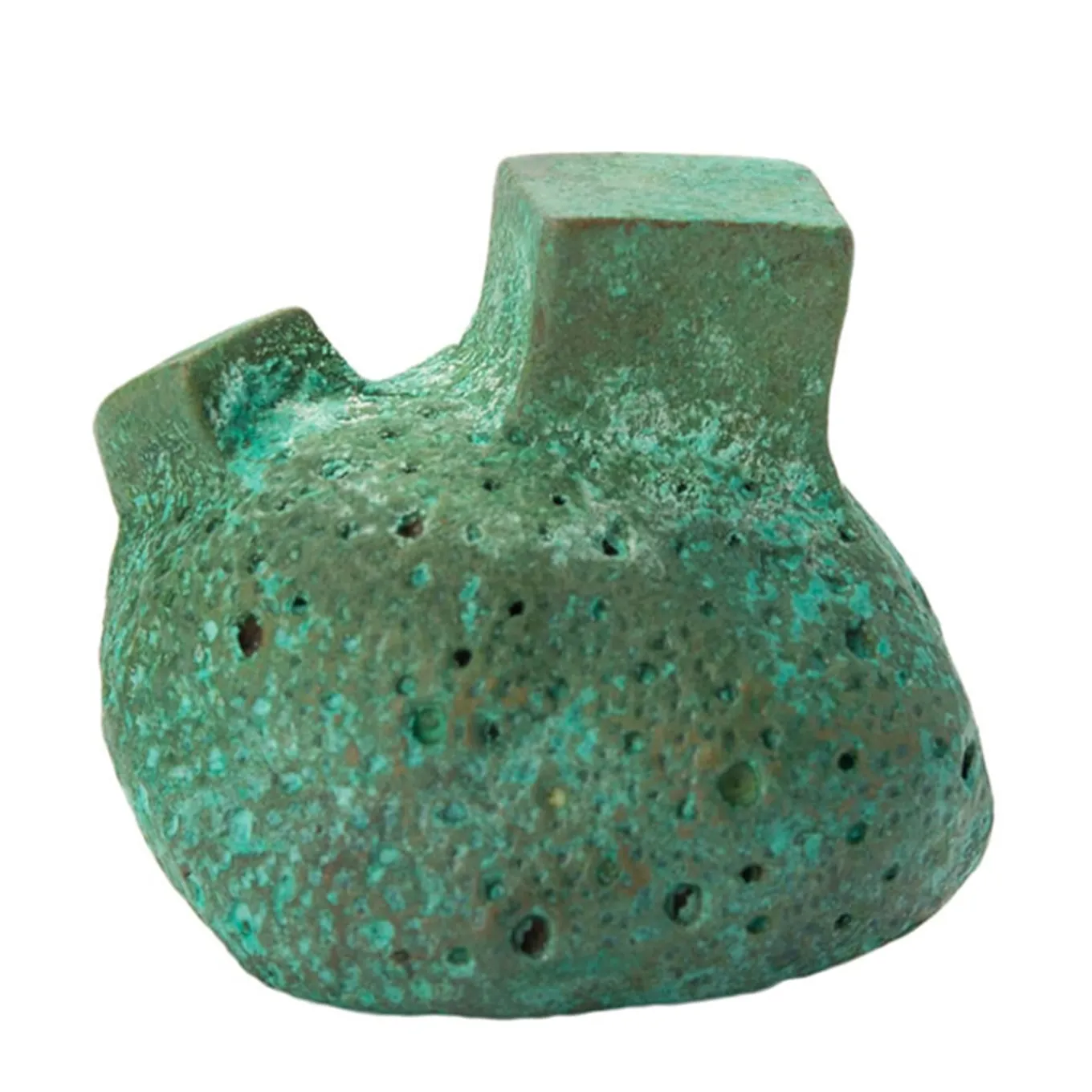 Exquisitely designed by Nicole Valenti for her Pietra series of doorknobs inspired by the fascinating, unique shapes of stones found in nature, this spectacular doorknob features a textured, irregular silhouette with a convex profile that enhances its practicality. Minutely handmade, it is fashioned of green-etched brass.