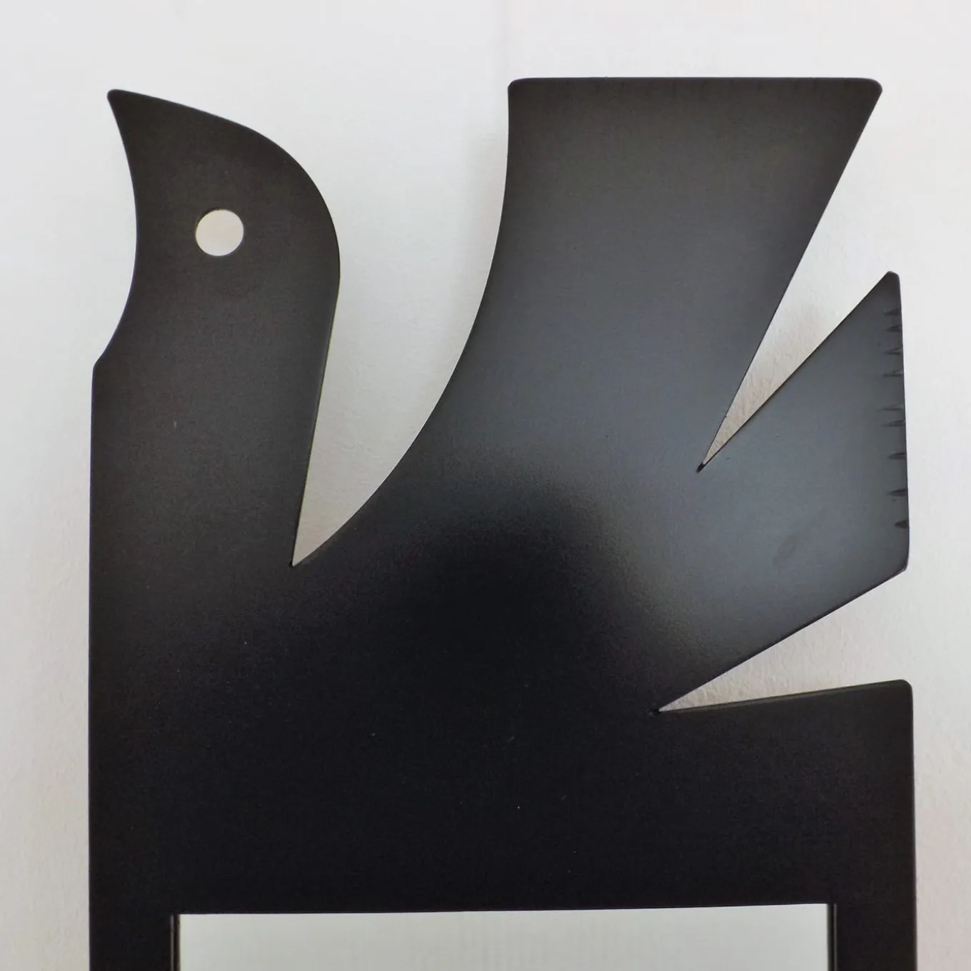 This eye-catching mirror merges ancestral craftsmanship with profound symbolism. Handcrafted in black metal, it showcases a bird motif, facing to the right, embodying themes of life and renewal. Inspired by the timeless connection between material and meaning, the mirror reflects duality and vitality. Designed to be mounted or placed, it invites contemplation through subtle playfulness, echoing traditions where the bird becomes a guardian of reflections and conversations within the home.