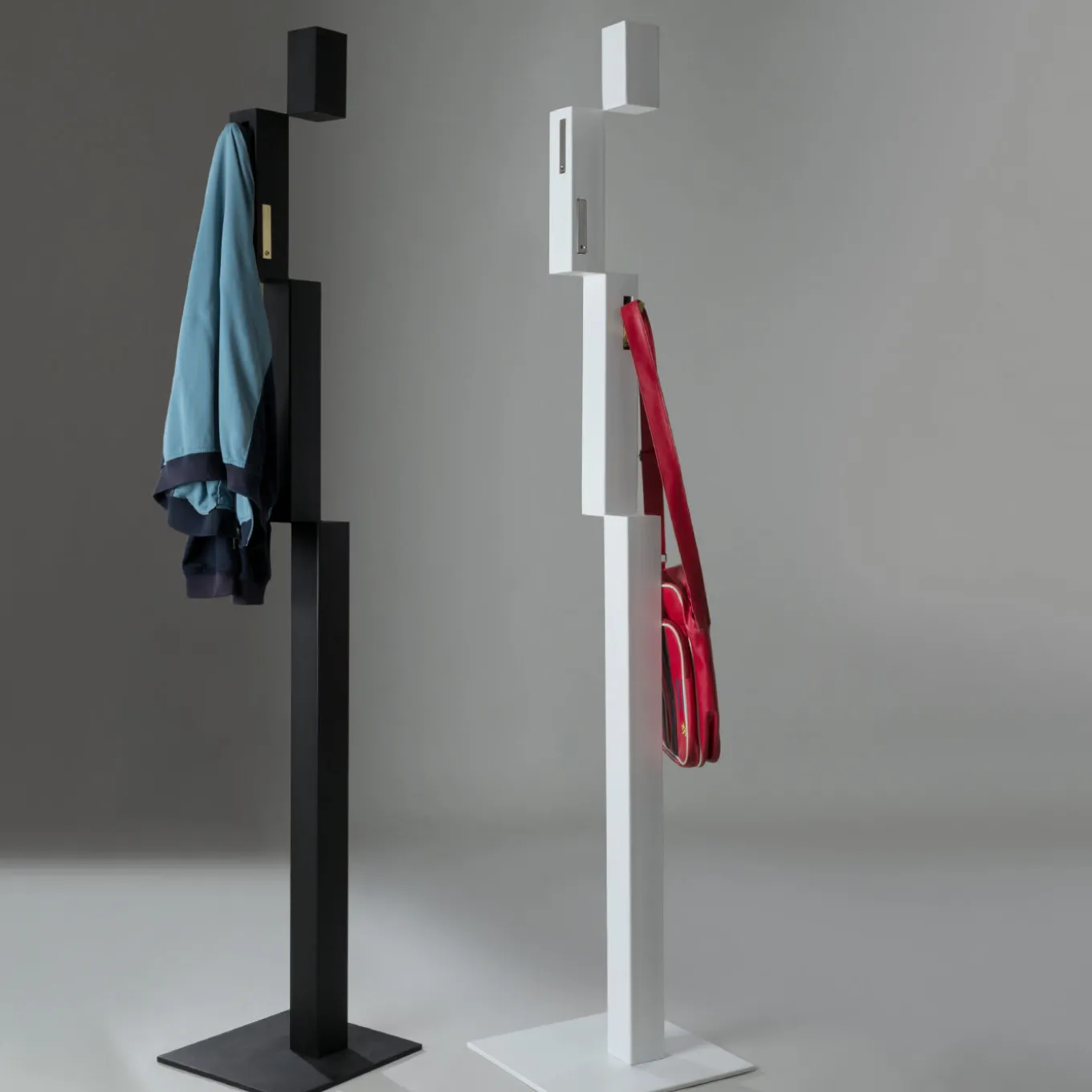 Drawing inspiration from 8-bit video games, the Pixel coat rack surprises for its unconventional silhouette made of metal with a white-lacquered finish. The different-sized blocks are staggered in a tower with an unexpected balance, the two central blocks concealing hooks for hanging coats, hats and more. An abstract sculpture to be admired from all angles, the Pixel Coat Rack creates an eye-catching aesthetic in commercial spaces, such as art galleries, offices, lounges, and contemporary homes. Contact the concierge for other finishes.