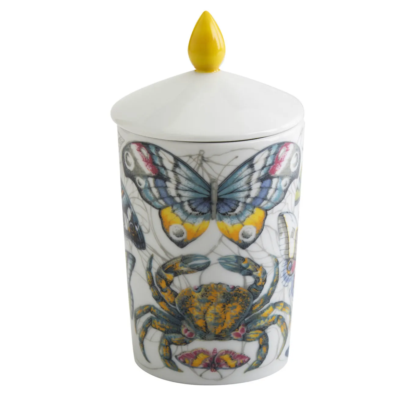 Notes of aromatic herbs and citrus blend to create the distinctive aroma of this scented candle made of pure soy wax, which burns through a thin wick in cotton and paper. Poured by hand in a porcelain container with lid developed by Taitù Milano celebrating the Festina Lente Home logo, the candle is inspired by the brand owner’s childhood memories of summer vacations spent in the sunny Amalfi coast among pine forests and blood oranges. A luxe box completes the design of this candle (400 gr) that makes for a burning time of about 90 hours.