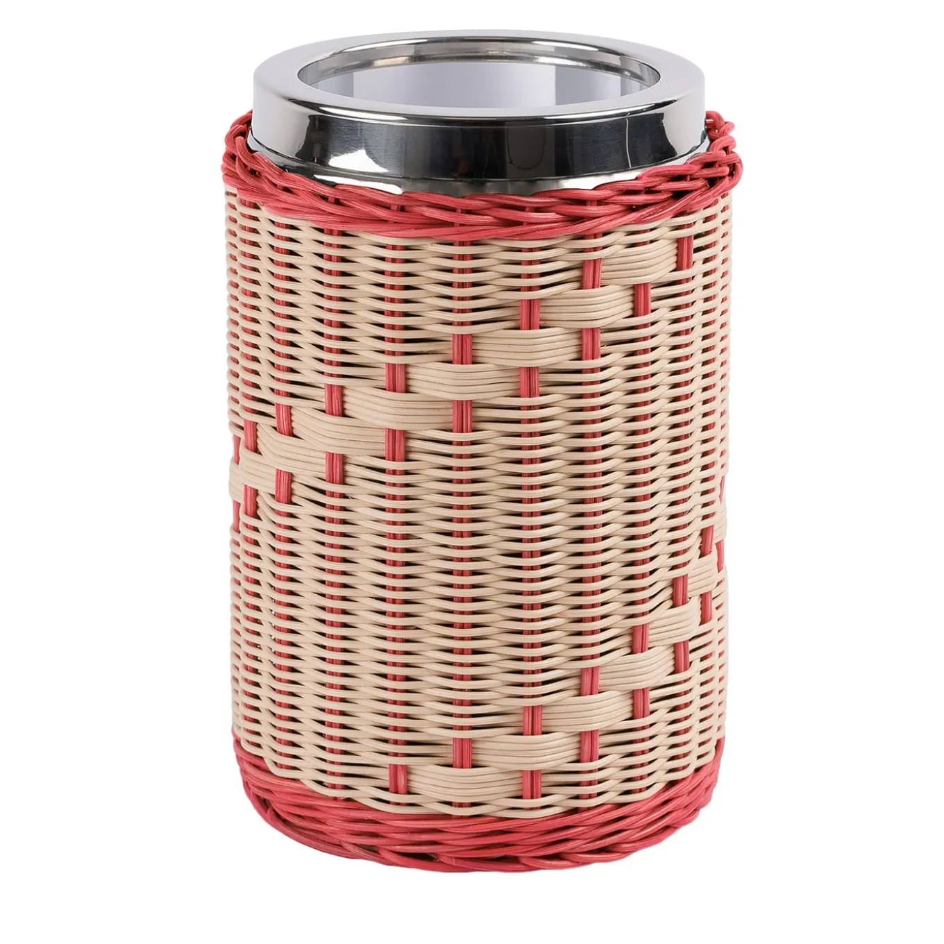 A meticulous display of traditional craftsmanship, this refined wine cooler and basket set is a unique and timeless design to showcase in contemporary dining tables. Woven by hand from wicker, it features pink details colored with a natural pigment extracted from madder. Please consult the Artemest catalog for other shape and color options.