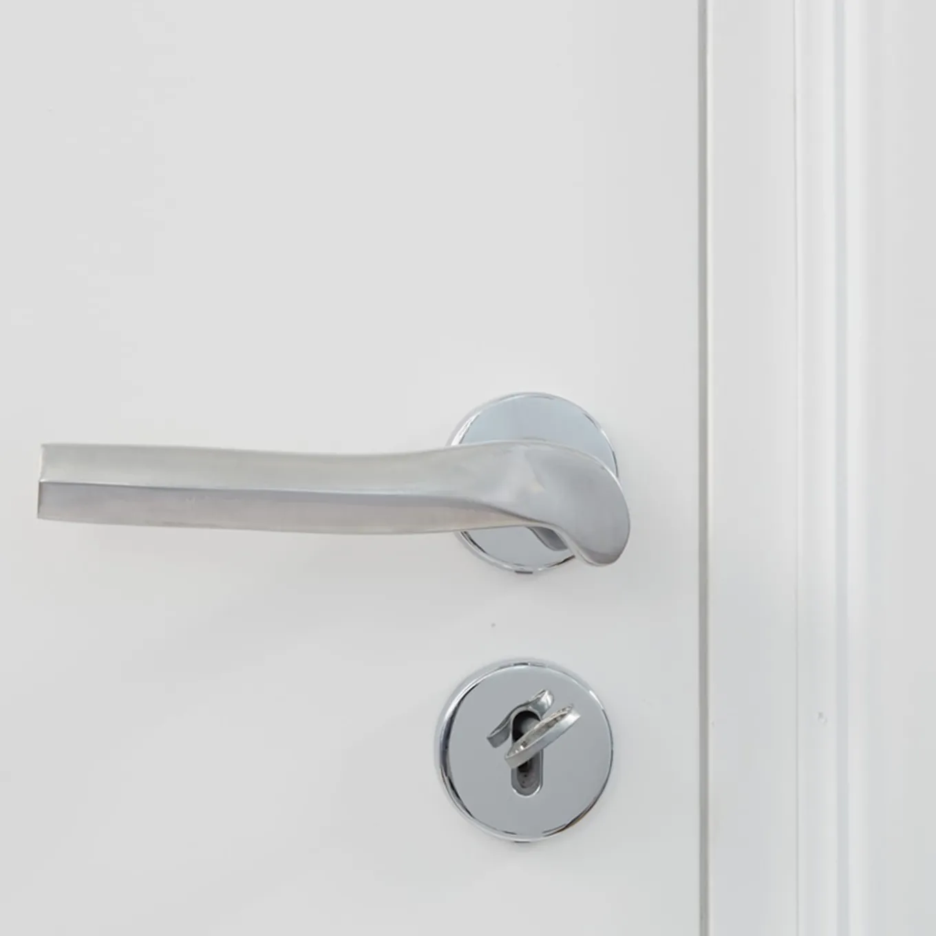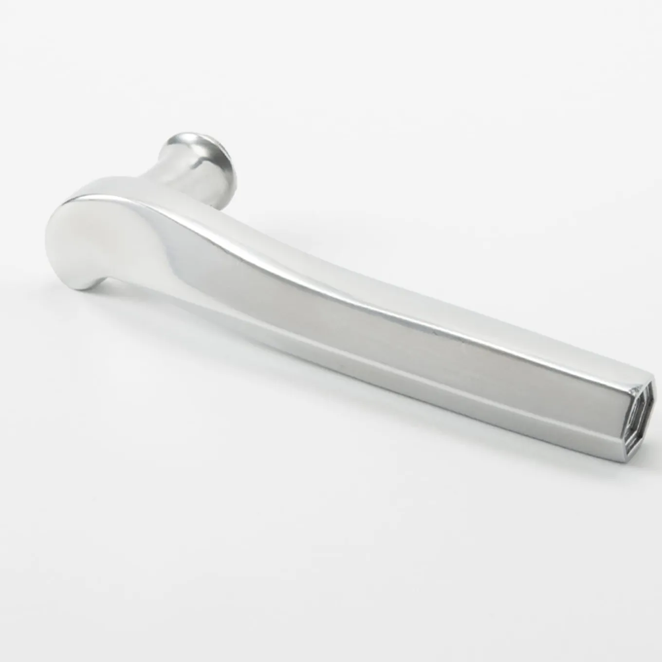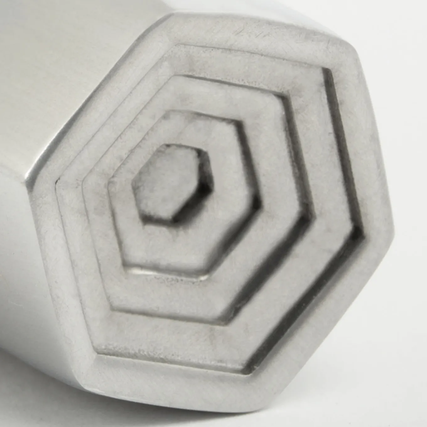 A superior accent piece for a contemporary interior, this door handle features a clean and minimalist shape elevated through great attention to detail. Marked by a particular end composed of a series of concentric hexagons, it is entirely handcrafted of polished aluminum. Part of the Prisma Collection designed by Nicole Valenti.