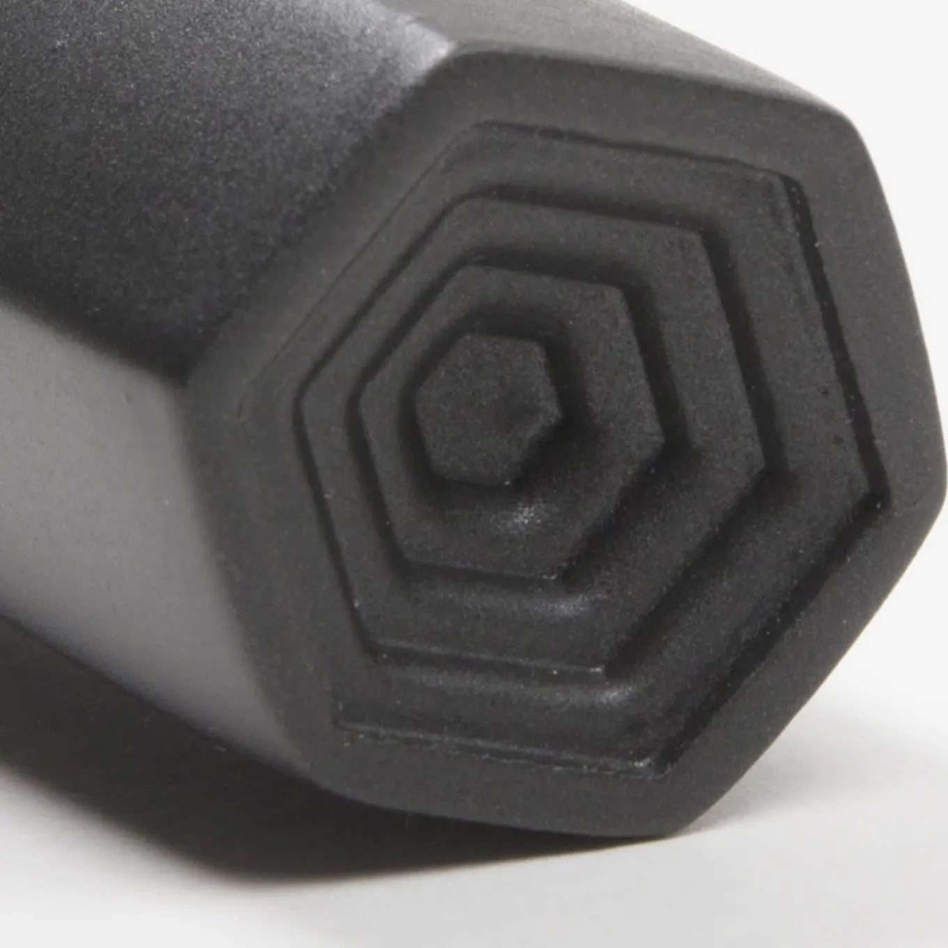 An original, captivating contrast to a white contemporary door, this matte black aluminum door handle combines minimalist style with exceptional attention to detail. Sleek and smooth, its silhouette is distinguished by an intriguing end composed of a series of concentric hexagons. This piece belongs to the Prisma Collection designed by Nicole Valenti.