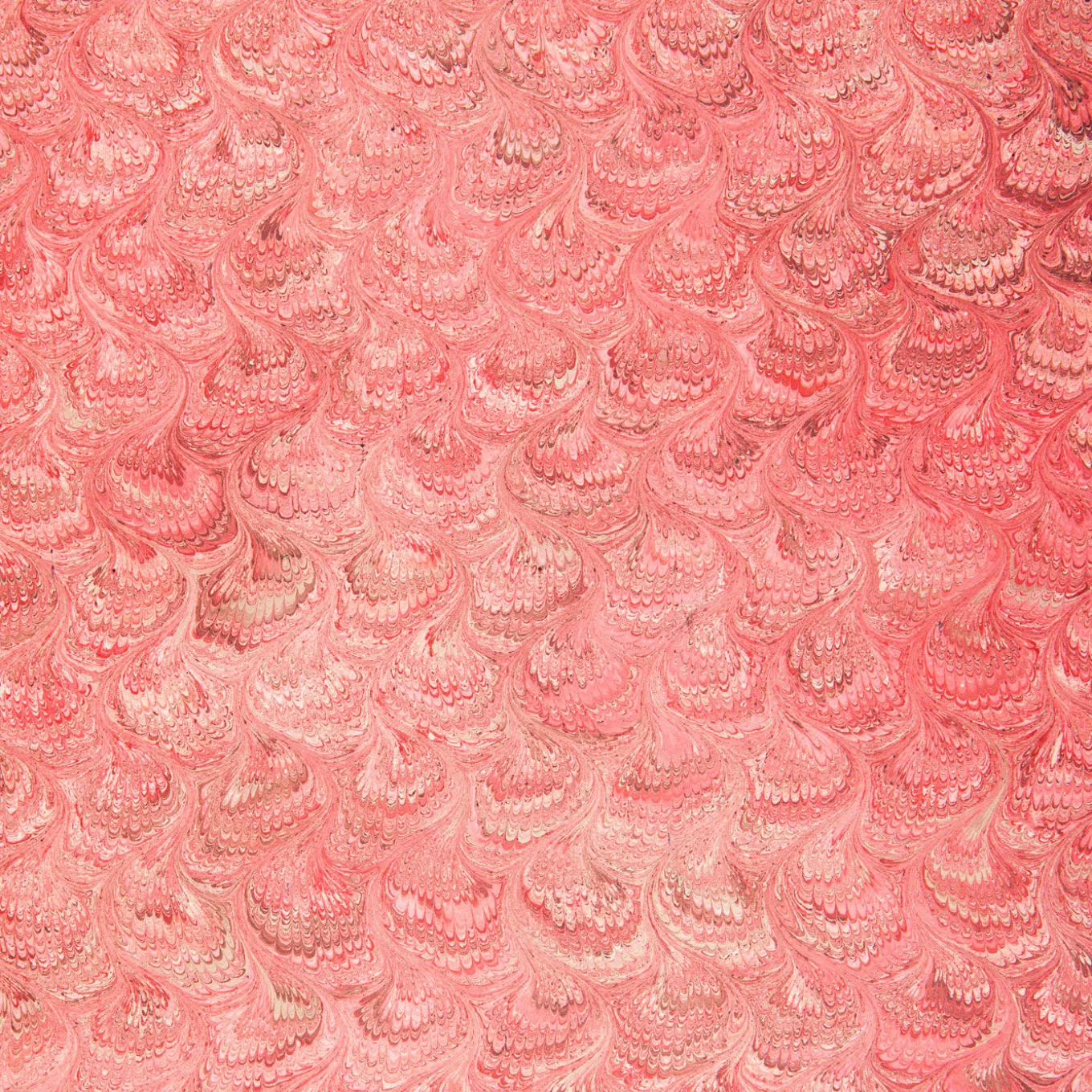 Five 50×70 cm sheets of hand-decorated paper featuring different motifs and shades of red. The embellishment is achieved with the ancient technique of marbling, a craft adopted and perfected by the Giannini artisans as part of their historic inventory.