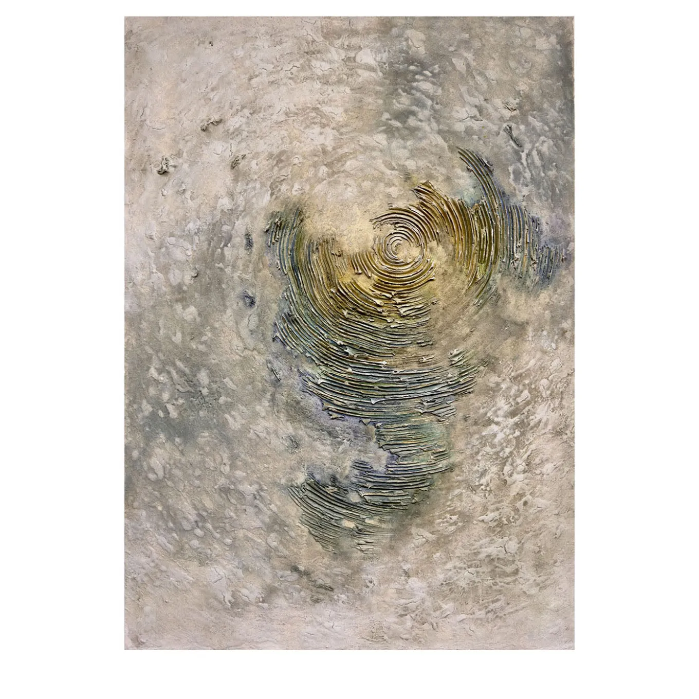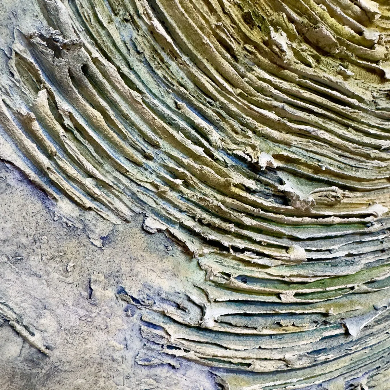Drawing from the ocean’s ever-changing currents, this piece evokes movement and tranquility. Deep greens, hints of blue, and golden highlights create a mesmerizing play of color, while the raised textures mirror the gentle undulations of water and coral formations. The composition captures the essence of a tide pool, preserving a moment of nature’s beauty. Ideal for those who appreciate the calming presence of water and organic forms. One-of-a-kind piece.