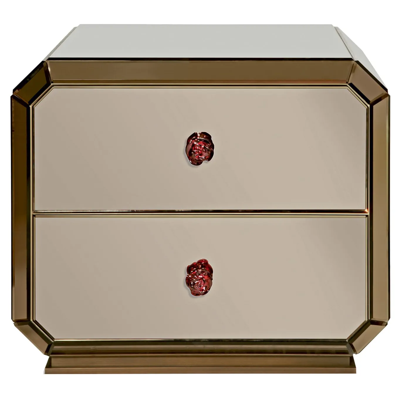A two-drawer nightstand with a refined and elegant style. The craftsmanship and the care to detail make it a real gem.