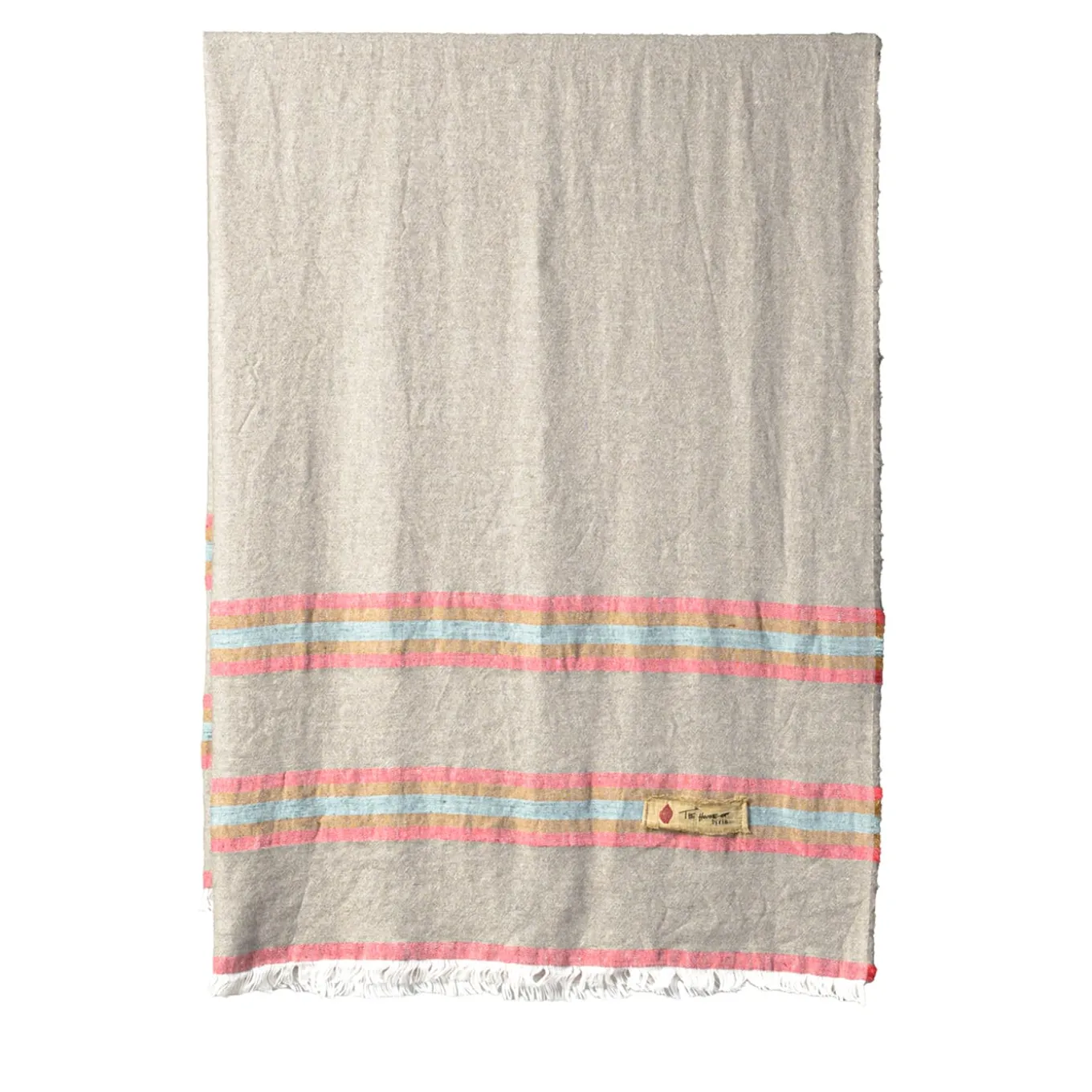 Quiet in its linear details as it is bubbly in its vivid chromatic choices, this blanket makes for a spot-on solution with accenting neutral-toned decors with a pop of color. The expert blend of fine linen and cashmere lends it striking softness and freshness, anticipating the pleasantness of its embrace.
