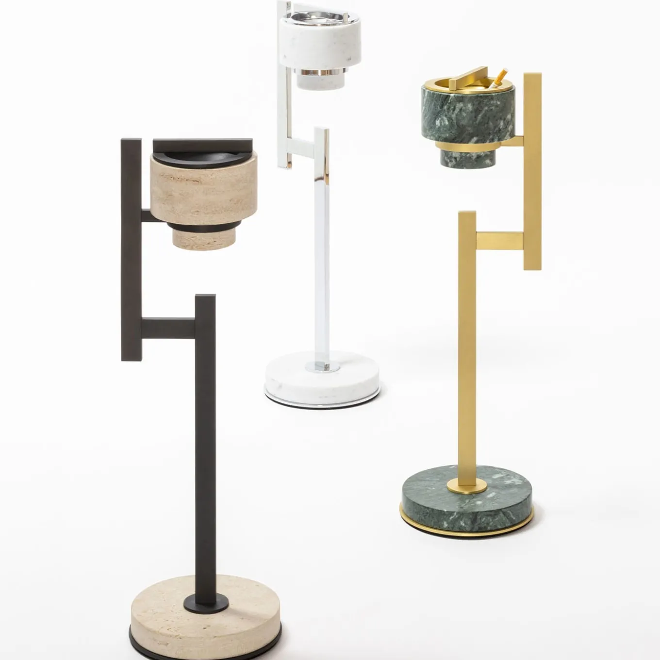The Rimini standing ashtray features a structure made of metal and marble combined, both available in different finishes. With its clean lines and materials that create eye-pleasing contrasts, it is both a perfectly functional creation and a beautiful decoration. Different Rimini Standing ashtray finishes are available upon request.