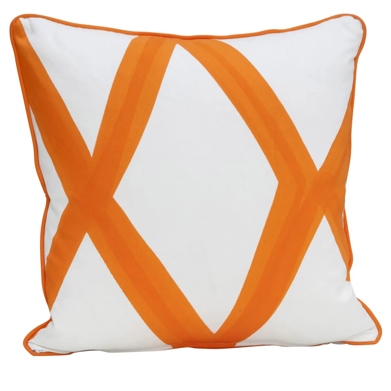 This elegant cushion has a down insert with a cover in 100% cotton decorated with a striking pattern of diamonds in vivid orange over a white background.