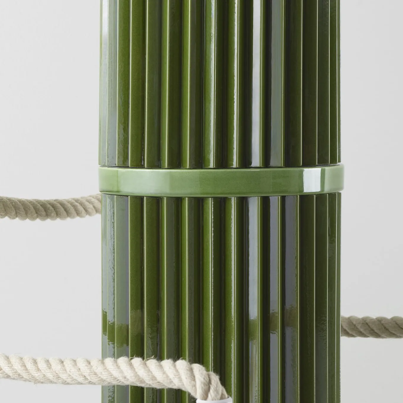 A splendid design of contemporary value by Ronan & Erwan Bouroullec in collaboration with Bitossi, this sculptural vase belongs to the exclusive Rombini series, marked by sophisticated chromatic choices and an elegant, simple aesthetic. Handcrafted of ceramic with the double-firing technique, it is rendered in a glossy green shade. Available in a wide range of colors and compositions, please consult the Artemest catalog for options.