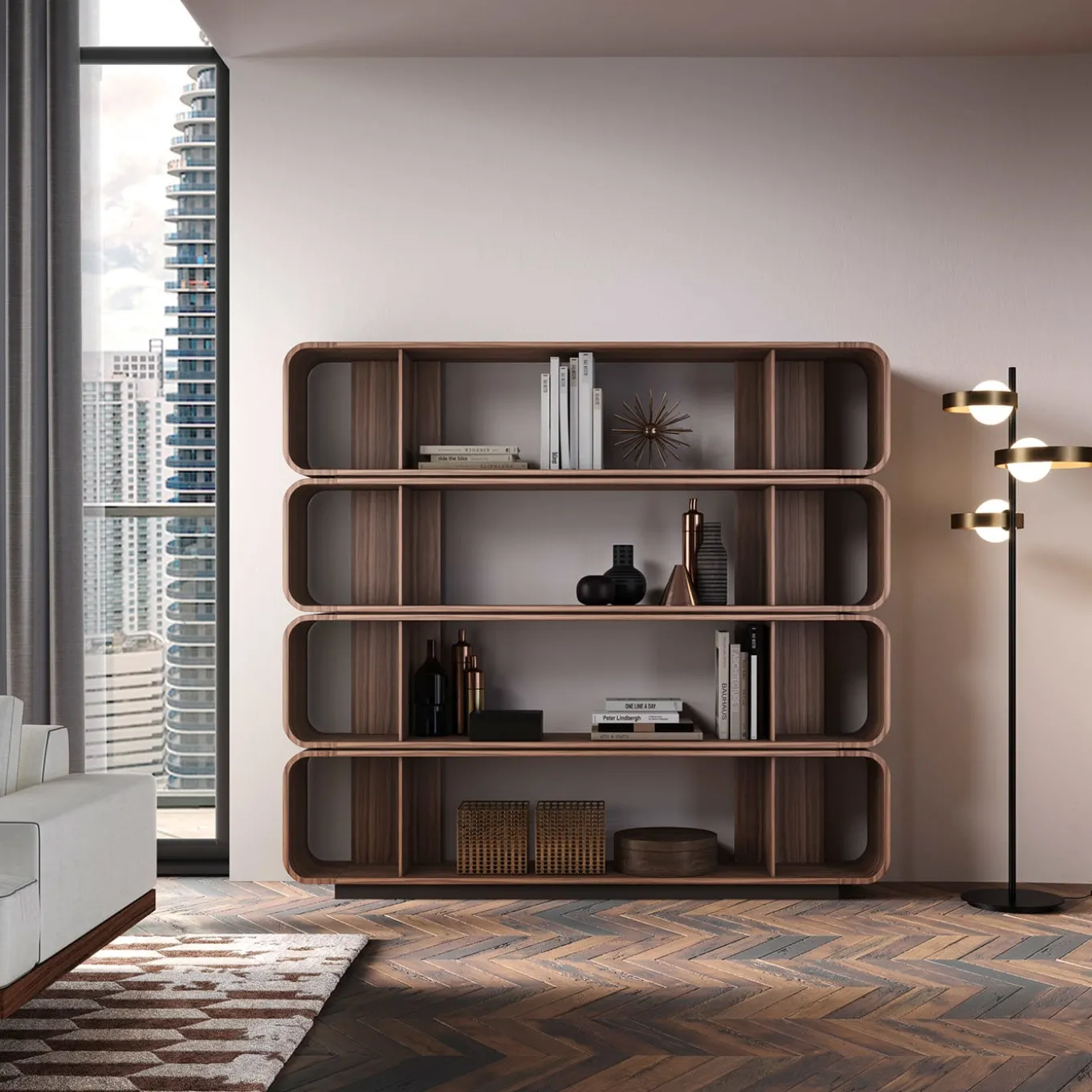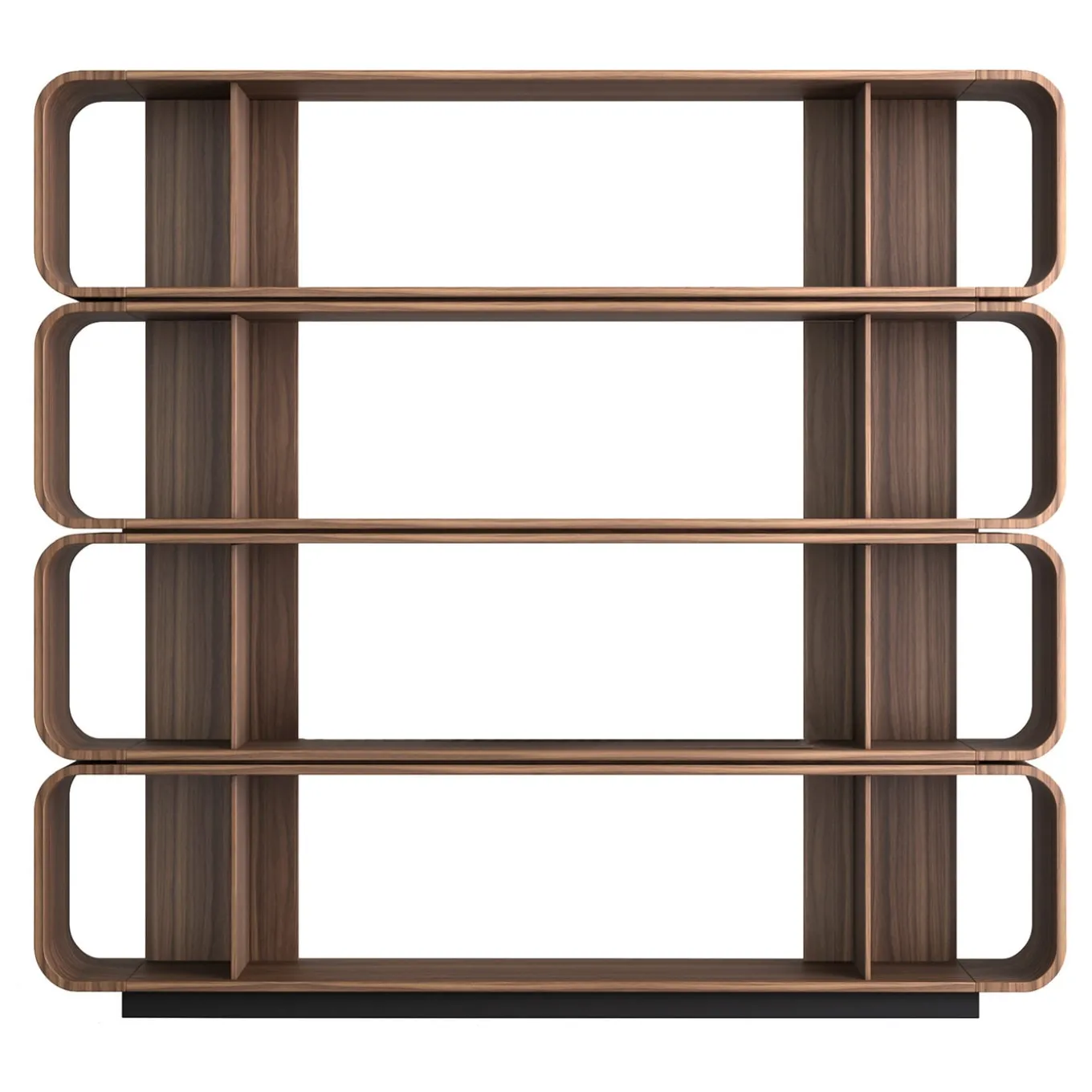 A sleek, contemporary design by Manuela Pelizzon, this exquisite bookcase will imbue a living area with unprecedented style. Boasting rounded, elegant lines, it is handcrafted of Canaletto walnut shaped into four horizontal shelves that are joined to form a striking silhouette. This design can be customized in size, please consult the Concierge for further information.