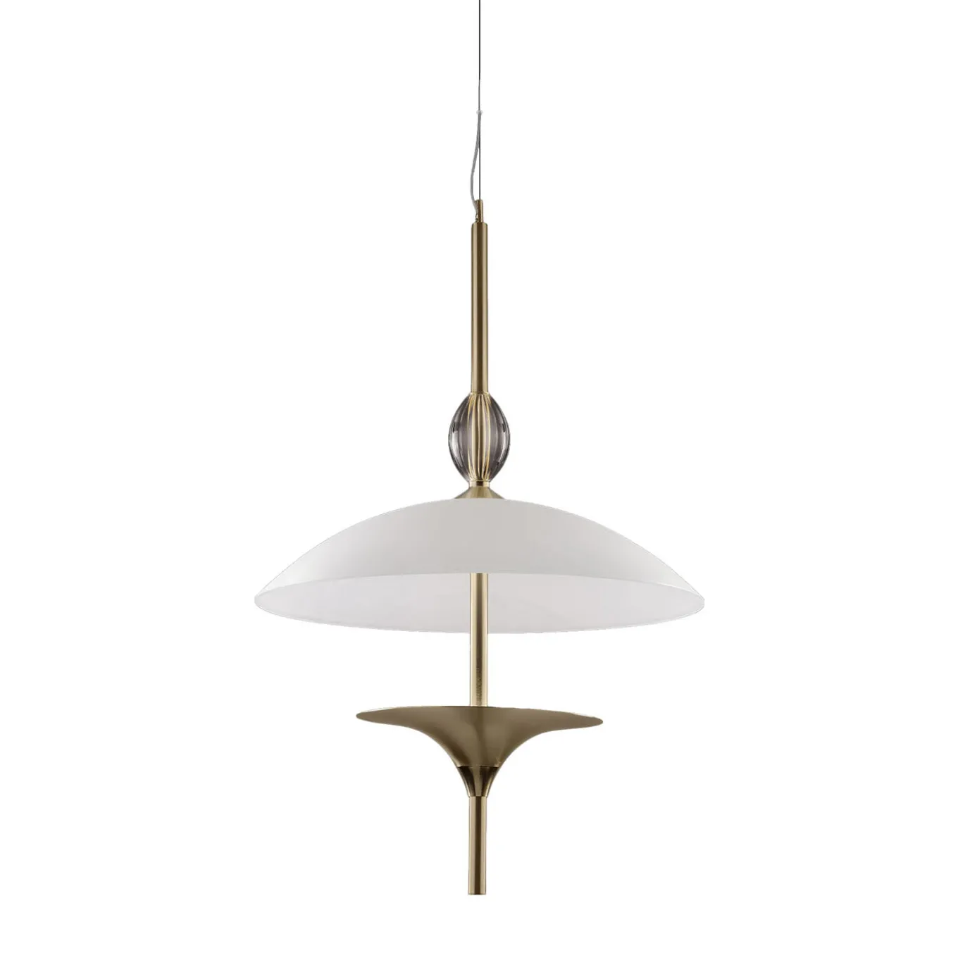 Experience the meticulous craftsmanship of our metal and aluminum components, uniquely turned based on customer drawings. The domes, curved technical glass masterpieces from Veneto, add an elegant touch. Opal plexiglass diffusers softly diffuse the light, while the satin gold finish exudes timeless luxury. Elevate any of our spaces with this extraordinary collection that combines artistry and design.