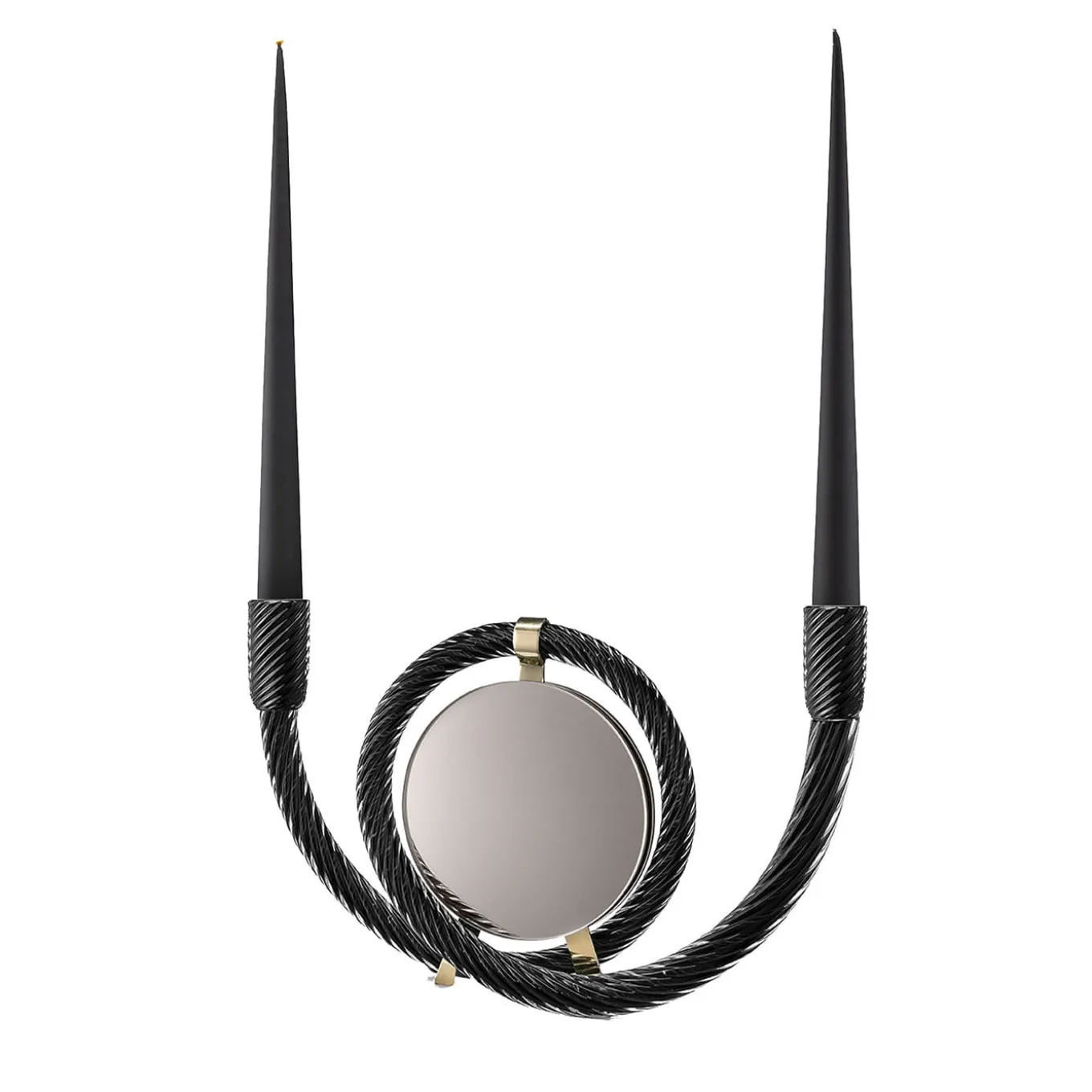 The Illumination Collection by Aina Kari and Giovanni Botticelli beautifully blends light, reflection, and exceptional craftsmanship. Inspired by ancient rituals of lighting a candle and gazing into water, this collection offers a modern interpretation of these timeless gestures. It combines the unparalleled quality of Gondola black Murano glass with playful fumé-colored mirrors by Giovanni Botticelli, capturing and refracting light in a contemporary style. The two candles included are white.