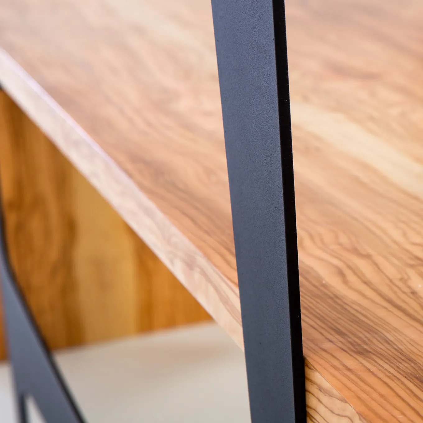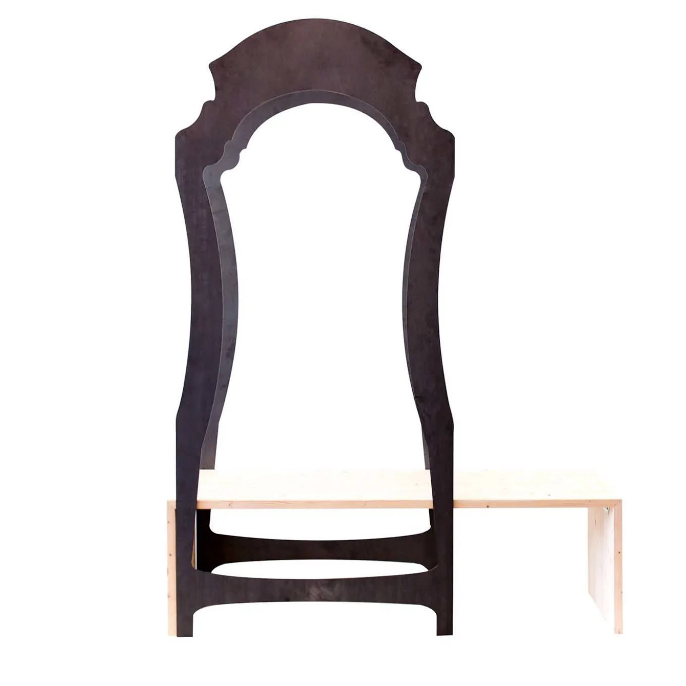 This sophisticated and unconventional piece merges art and design and reinterprets the traditional concept of a wardrobe with a contemporary twist. Freed from spatial constraint, this sculptural wardrobe is reduced to a pure iron frame of classic inspiration, while the rectangular bench, made of wood with a natural finish, is placed in a transversal line to create visual contrast. Designed by architects Flore & Venezia, this captivating piece will suit any contemporary interior, both residential and commercial. The bench measures 165 x 54 x 50h cm.