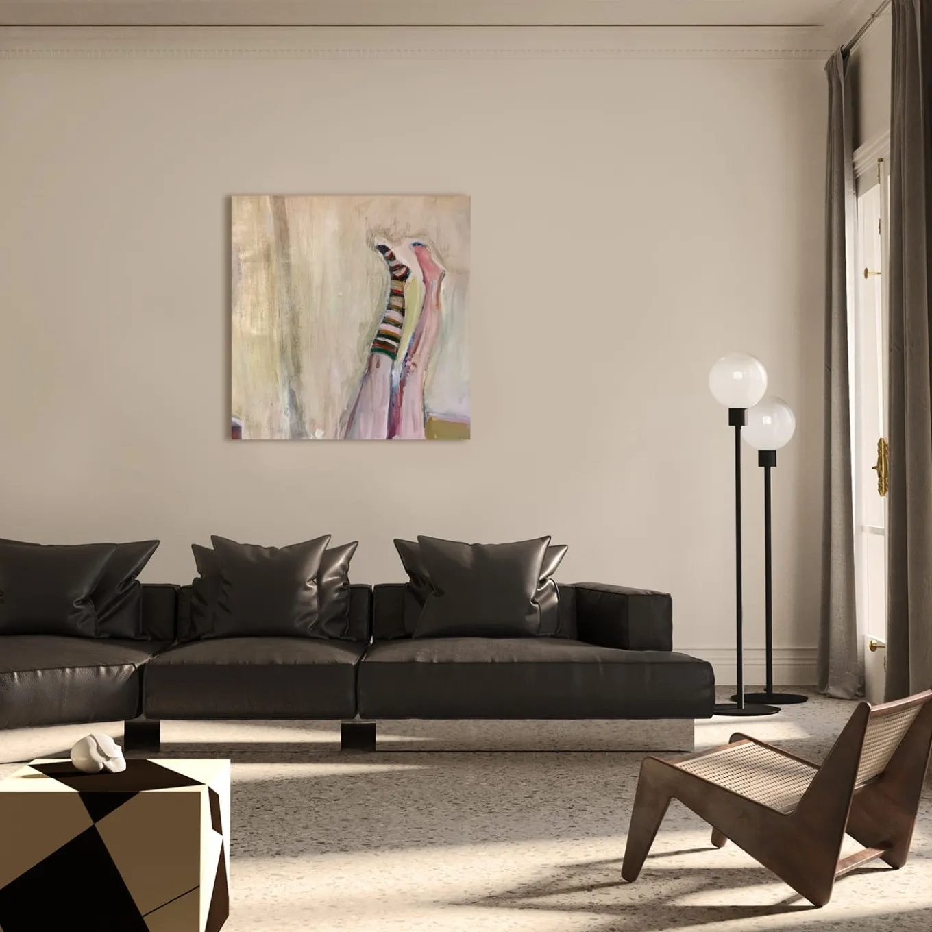 This “untitled” (senza titolo) painting depicts a playful image exuding lively and vivacious emotions. Depicting the two legs of a young individual, one barefoot and one covered with a long striped sock, it explores the concepts of identity and personality. Please consult the Concierge for further information. This is a unique piece of art. Delivered with a certificate of authenticity. Frame not included.