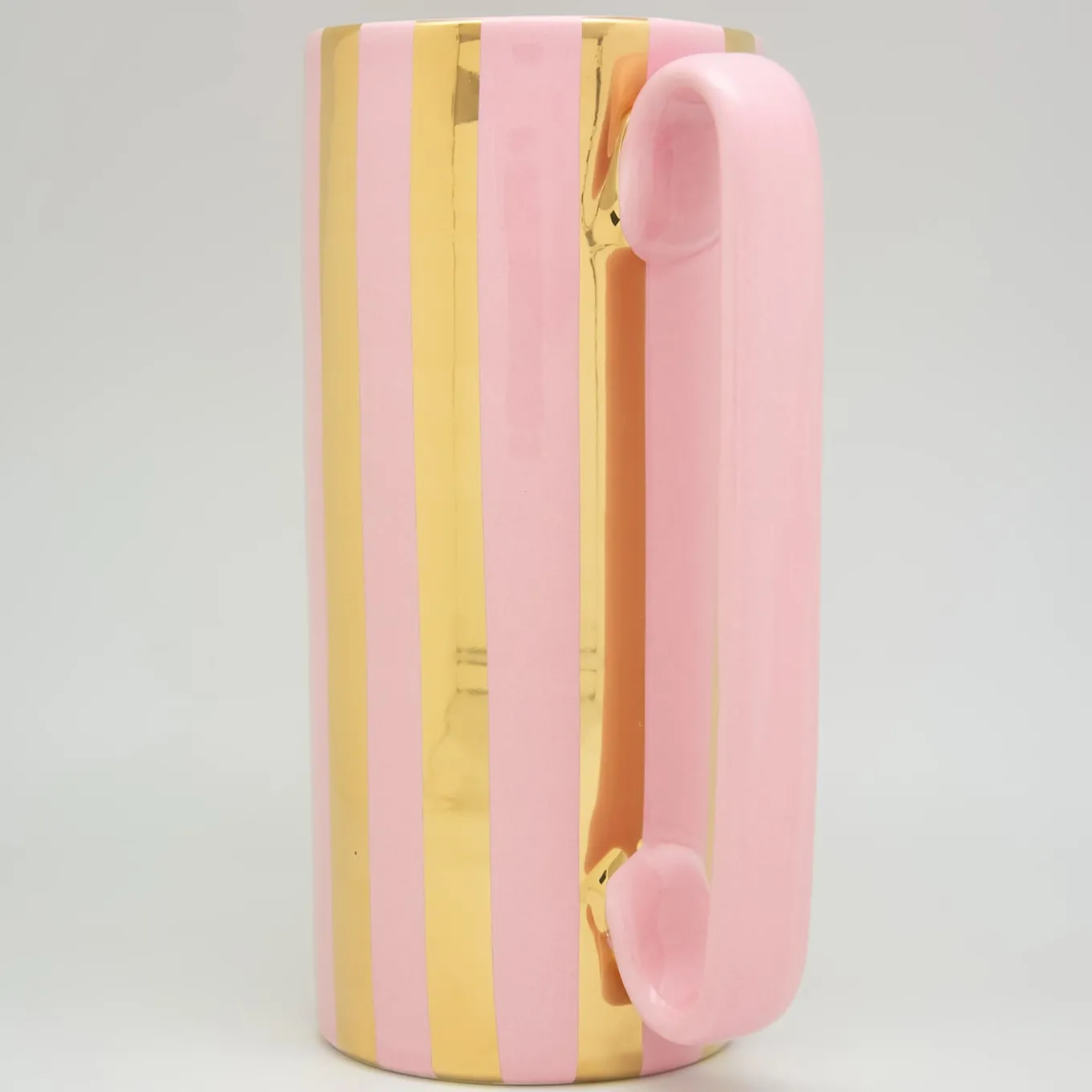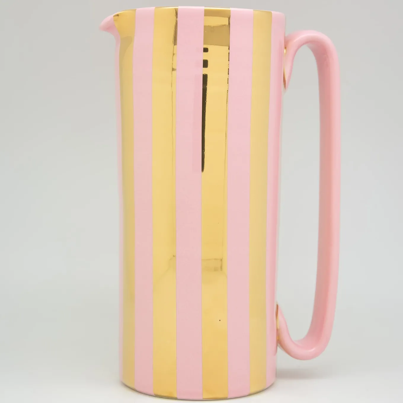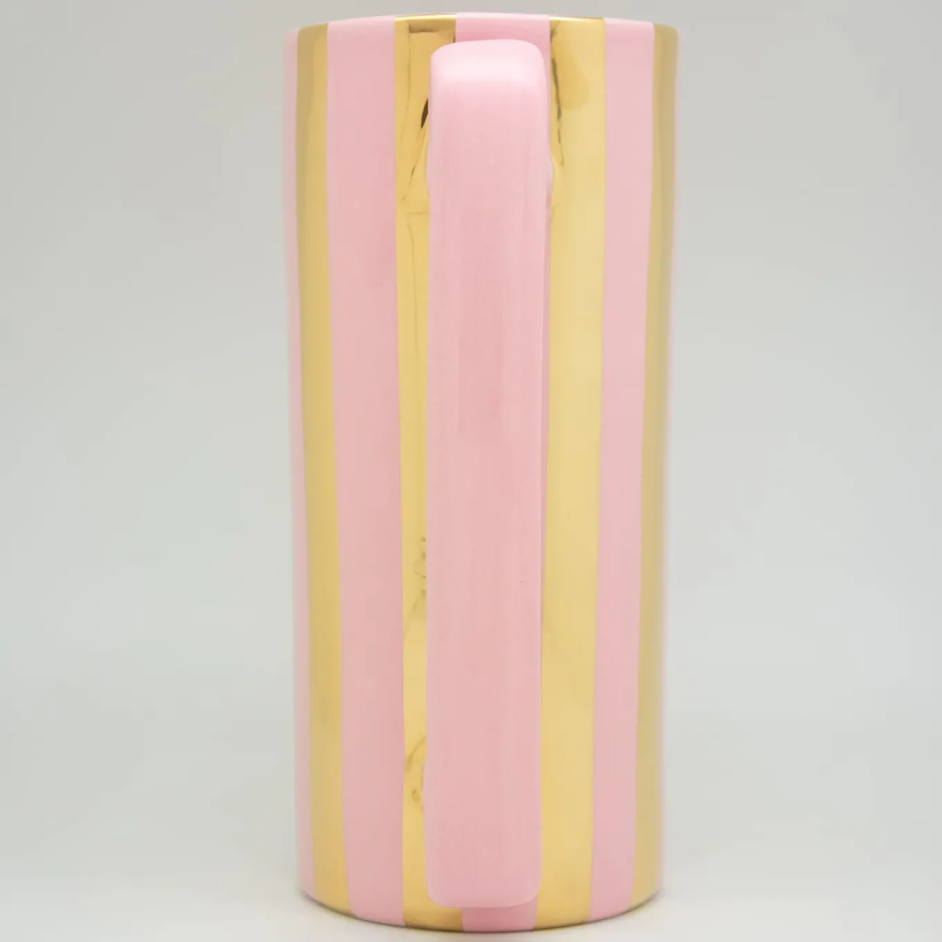The authentic 24 K Gold ‘Mercante’ pitcher, is the one and only ceramic carafe with a linear handle. Handthrown in white terracotta, the stunning Serlio Carafe is a beautiful example of fine Italian craftsmanship. Enhance any table with Tuttoattacato’s minimalistic design, emphasizing any classic or contemporary dinnerware with its elegant design and quality. Fired multiple times, the 24 K Gold stripes are a result of the traditional ‘Terzo Fuoco’ technique.