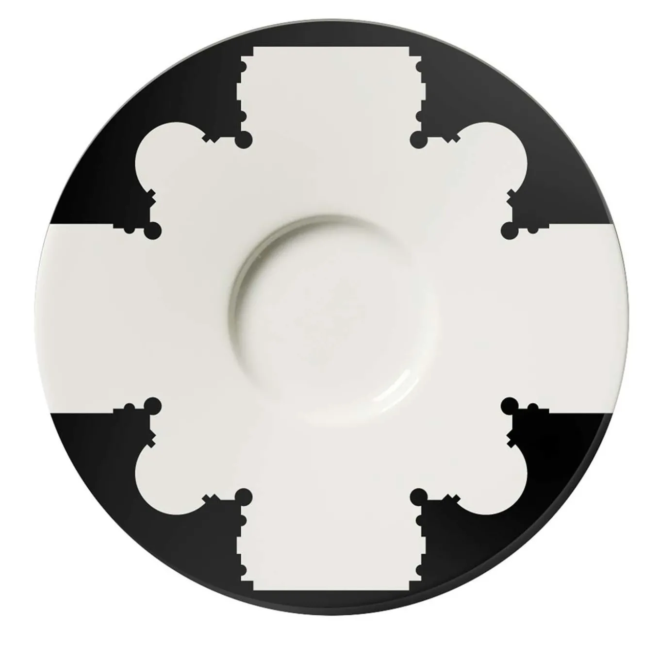 Effortlessly merging home design and Baroque architecture, this exclusive porcelain set of espresso cup and saucer will be a spot-on addition to black-and-white contemporary tables. Both the saucer and the espresso cup showcases some stylized motives reproducing architectural elements of Sicilian Baroque churches.