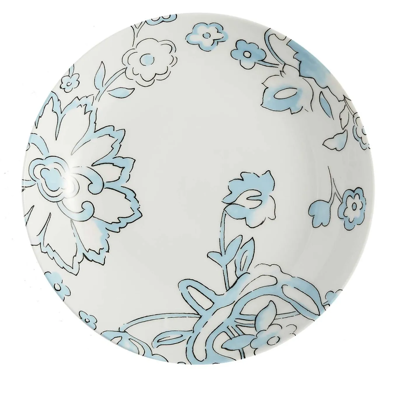 Exuding timeless allure and subtle sophistication, this set of 2 soup plates combines minimalist design with traditional methods to create a unique work of functional decor. Handcrafted of white porcelain, these dainty plates feature a simple floral line drawing in black embellished with subtle brushes of light blue, the hint of color adding balance and whimsicality to this piece. The plate is 22 cm in diameter.