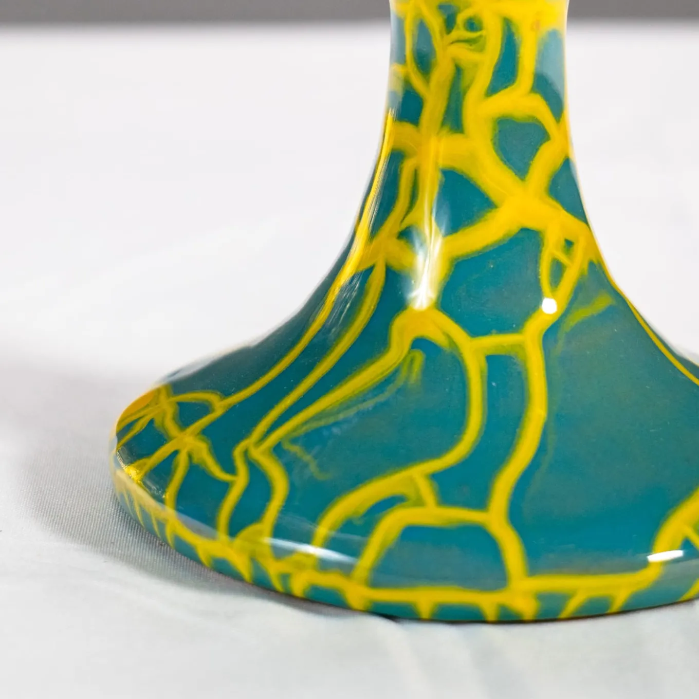 A vibrant chromatic selection made to emphasize a likewise daring fluid-lined motif immediately distills this cup’s stylish personality. Deftly handcrafted of ceramic and indeed excellently retaining cold, it features an 18-cl capacity that underlines its versatility. Dishwasher safe, it captures the eye with its vibrant-yellow craquelure-inspired pattern emerging from teal glaze.