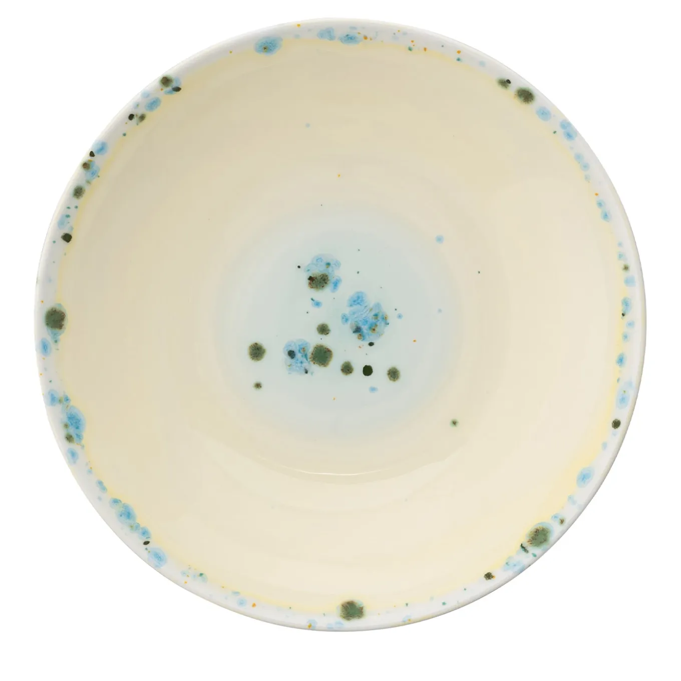 The Murrine Dessert Plate is a stunning piece that draws inspiration from the celebrated Venetian glass techniques. The vibrant yellow hue captures the essence of intricate kaleidoscopes, inviting joy and lightness to your dining experience. Coralla’s unique design features Murrine patterns that elegantly open and disperse along the edges, resembling colorful flower seeds scattered across the table. This collection also includes green, lilac, and grey.