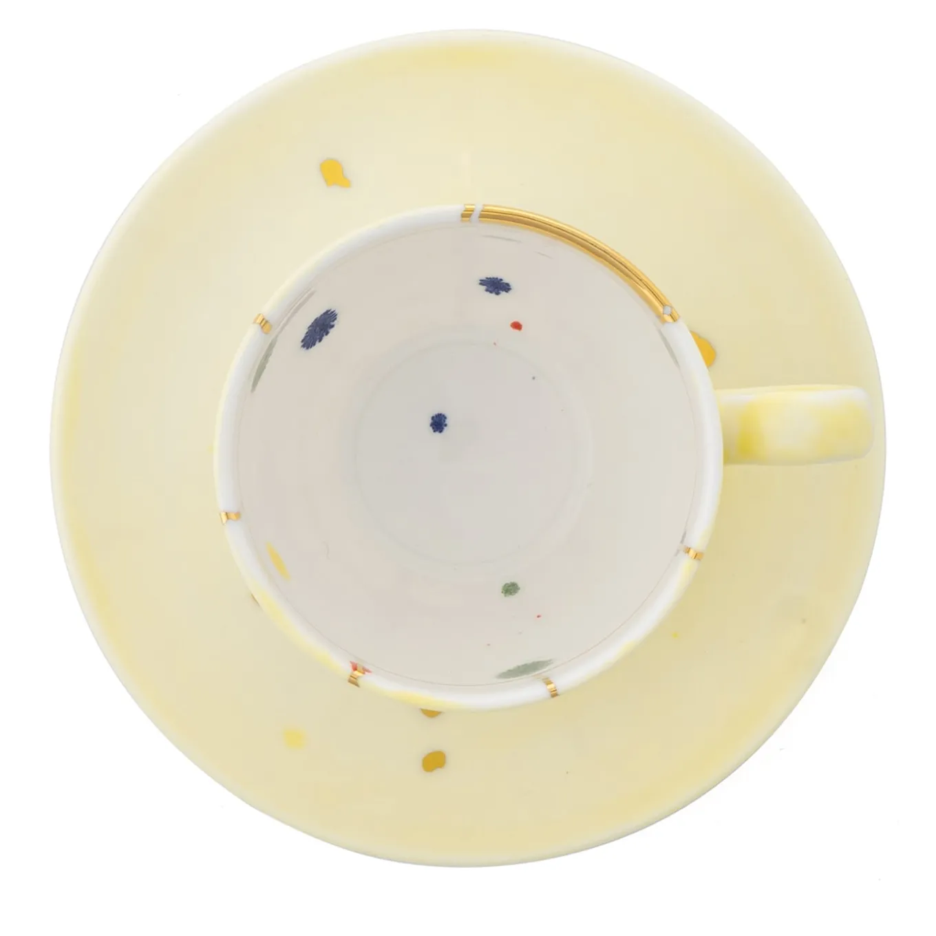 The Naples Coffee Cup from the Florida collection radiates luxury and cheer, embodying the vibrant spirit of Florida since its launch in 2023. Inspired by the state’s colorful heritage, this coffeecup features a sunny Naples yellow, reminiscent of its stunning beaches and sunsets. It is adorned with multicolor dots and a golden net, adding a whimsical touch.