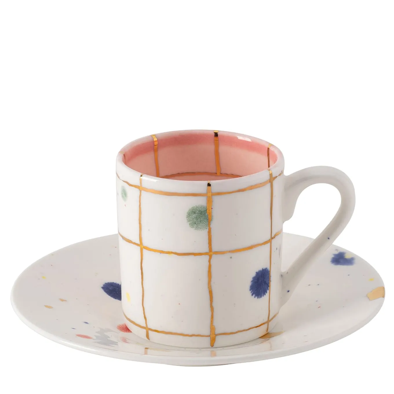 The Palm Beach Coffeecup & Saucer from the Florida collection is a delightful blend of luxury and cheerfulness, launched in 2023. Inspired by Florida’s vibrant character and colorful heritage, this coffeecup features a charming Palm Beach pink hue, reminiscent of the state’s stunning sunsets and beautiful beaches. The design is adorned with a lightly colored center sprinkled with multicolor dots and a golden net.