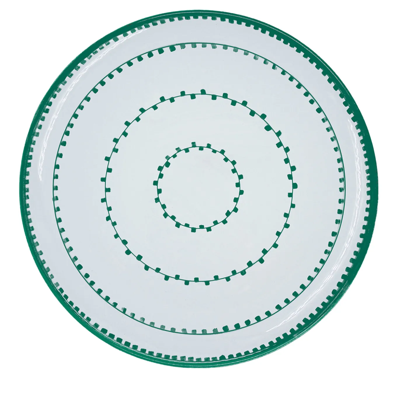 This exquisite piece captures the enchanting ambiance of festive lights adorning the architecture of Puglia. Each plate showcases intricate patterns that evoke the warmth of vibrant celebrations and the essence of Italian hospitality. A limited edition item, this plate is perfect for creating a unique and colorful dining experience. Designed to be practical as well as beautiful, this product is dishwasher safe, ensuring effortless maintenance. It is pairable it with the matching Luminaria tablecloth for a truly captivating ensemble.