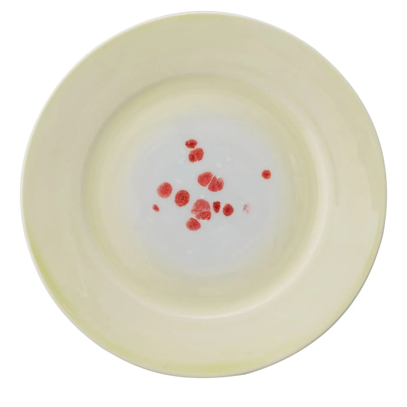 The Murrine Bread Plate beautifully captures the essence of Venetian glass artistry, inspired by vibrant, colorful kaleidoscopes. Its refreshing green hue adds a touch of nature to your table, evoking the joy of spring. The plate features Murrine patterns that elegantly open and disperse along the edges, reminiscent of colorful flower seeds scattering in the wind. Part of a collection that includes yellow, lilac, and grey.