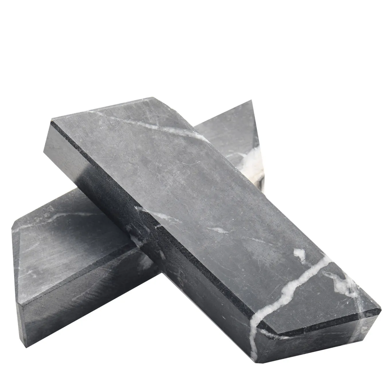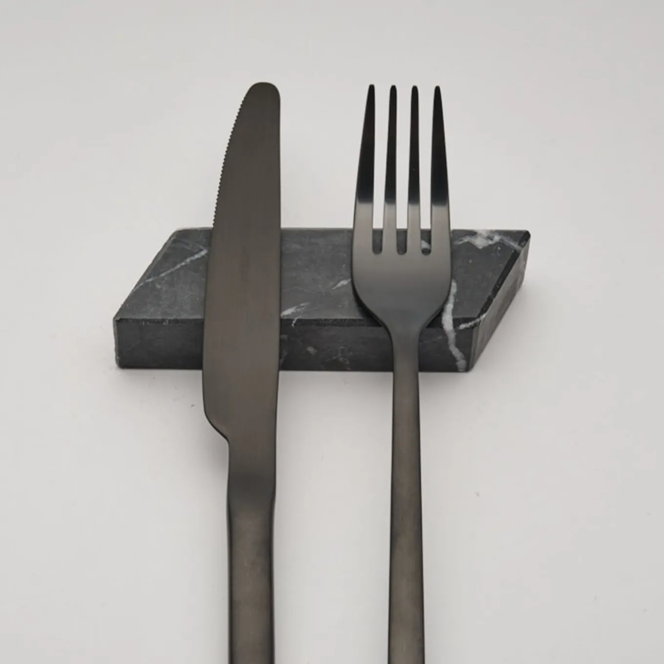 The superb chromatic intensity of black Marquinia marble, with its black hues and white contrasting veins, lends this set of four cutlery rests their unfailing, timeless elegance. Marked by a clean-cut silhouette that makes them a perfect complement piece for contemporary tables, it is offered in multiple marble options available in the Artemest catalog.