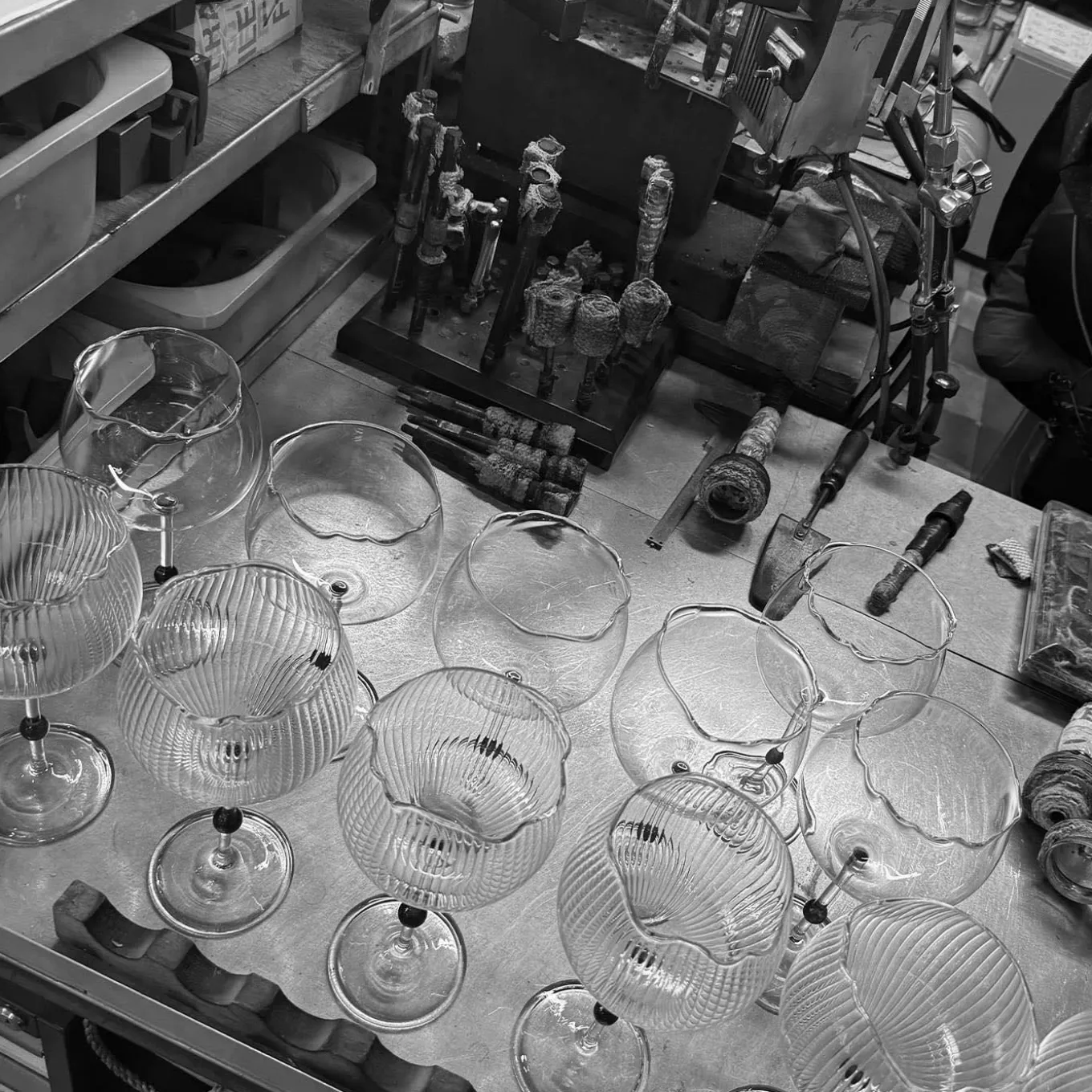Fluid and organic like water, precious as a pearl. Each piece is meticulously handcrafted in Italy by master glassmakers using high-quality borosilicate glass. Resistant to thermal shocks, it allows for use with both hot and cold beverages. Each set comprises two smooth cups, two cups with bold lines, and two cups with a subtle oblique line. The pearl color is available in other shades, please ask the Concierge for further information and set options.