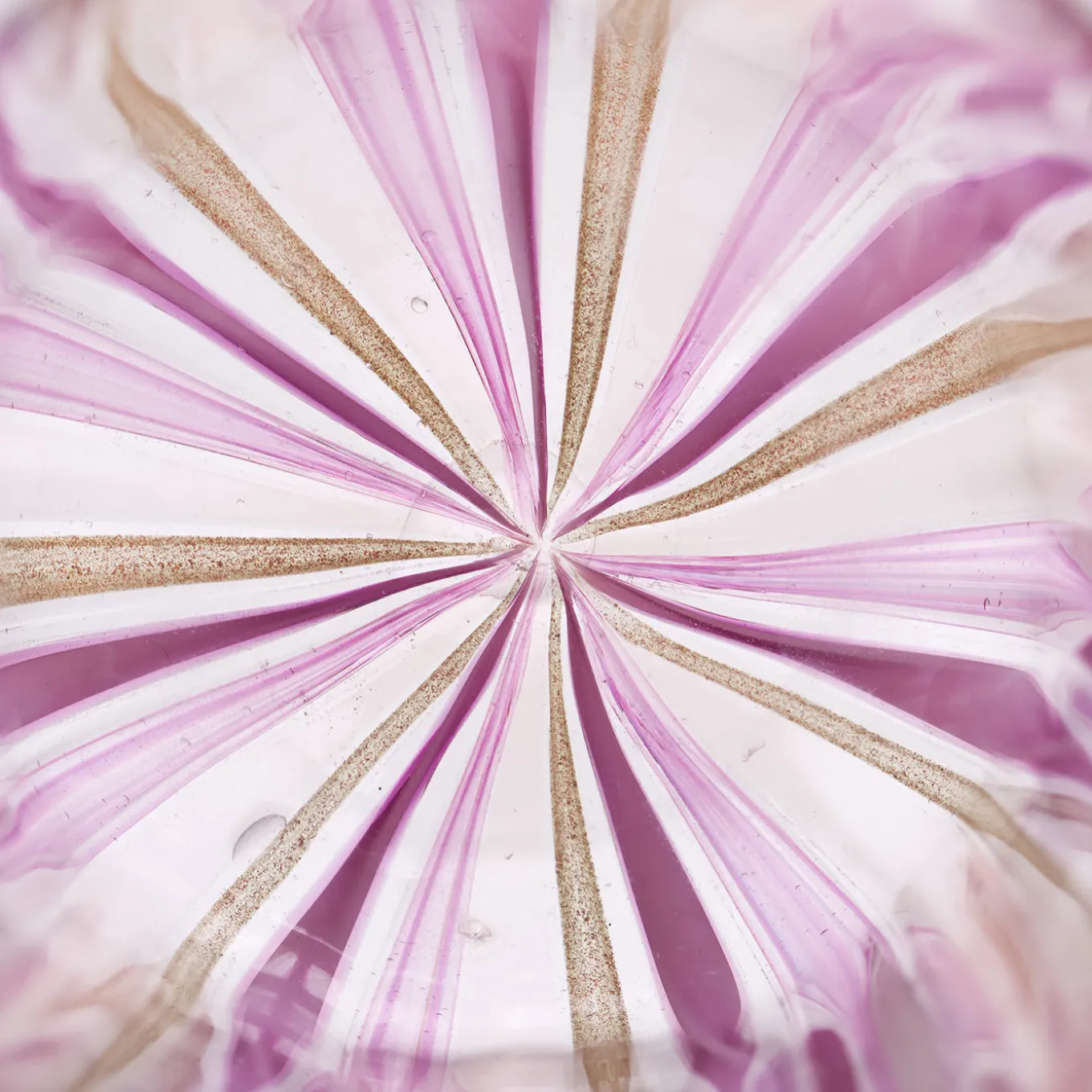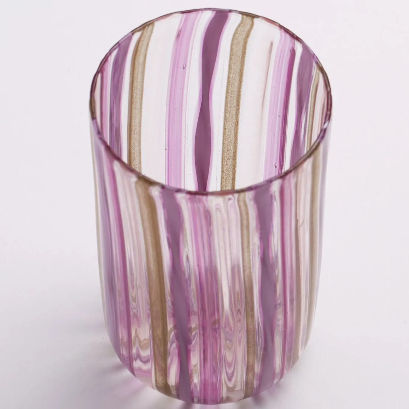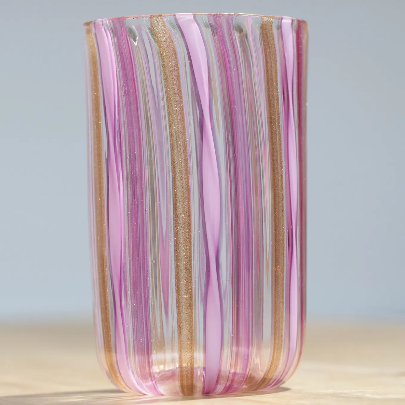 Set of 6 filigree Murano glasses made with the “a Canna” technique, where canes of colored glass are melted into a clear glass base. This beautiful pink and gold set includes 6 glasses entirely handcrafted on the Venetian island of Murano by the master glass blowers of La Fornasotta. The filigree glasses are usually considered the most precious among all Murano glasses.