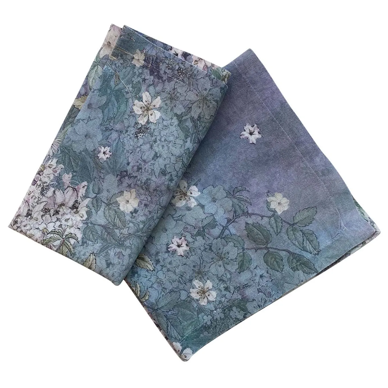 A romantic pattern of delicate white flowers on a light blue background graces this set of 6 placemats with matching napkins. Woven from high-quality linen, this exclusive set makes for a refined presence on the table with its subtle design, whose natural feel will complement and enhance a wide range of tableware, from traditional to contemporary.
