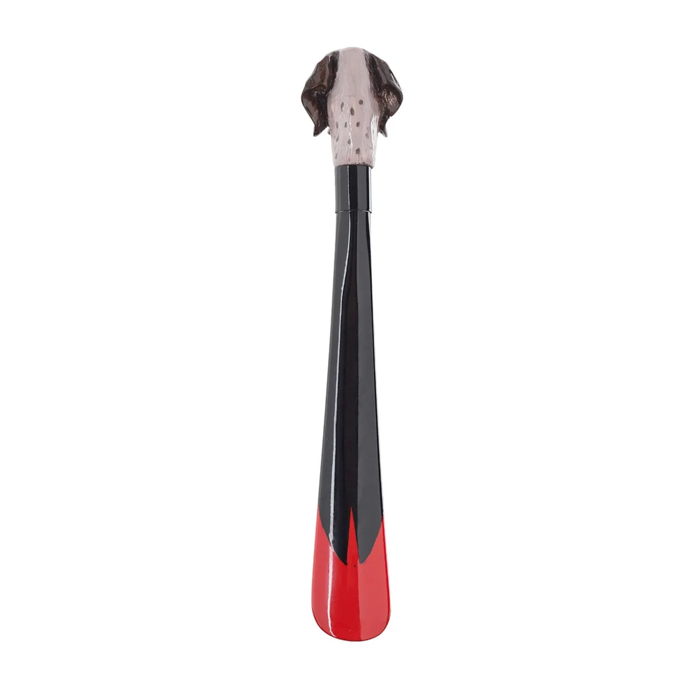 Whimsical actualization of a setter wearing a suit, this shoehorn is an artisan gem for hunting aficionados. A painstaking manual work leads to the detailed zoomorphic design and handmade decorations, which accent the Setter marble powder handle and the ABS paddle, respectively. Sealed by a hand-decorated brass ring, the piece comes in an exclusive box.