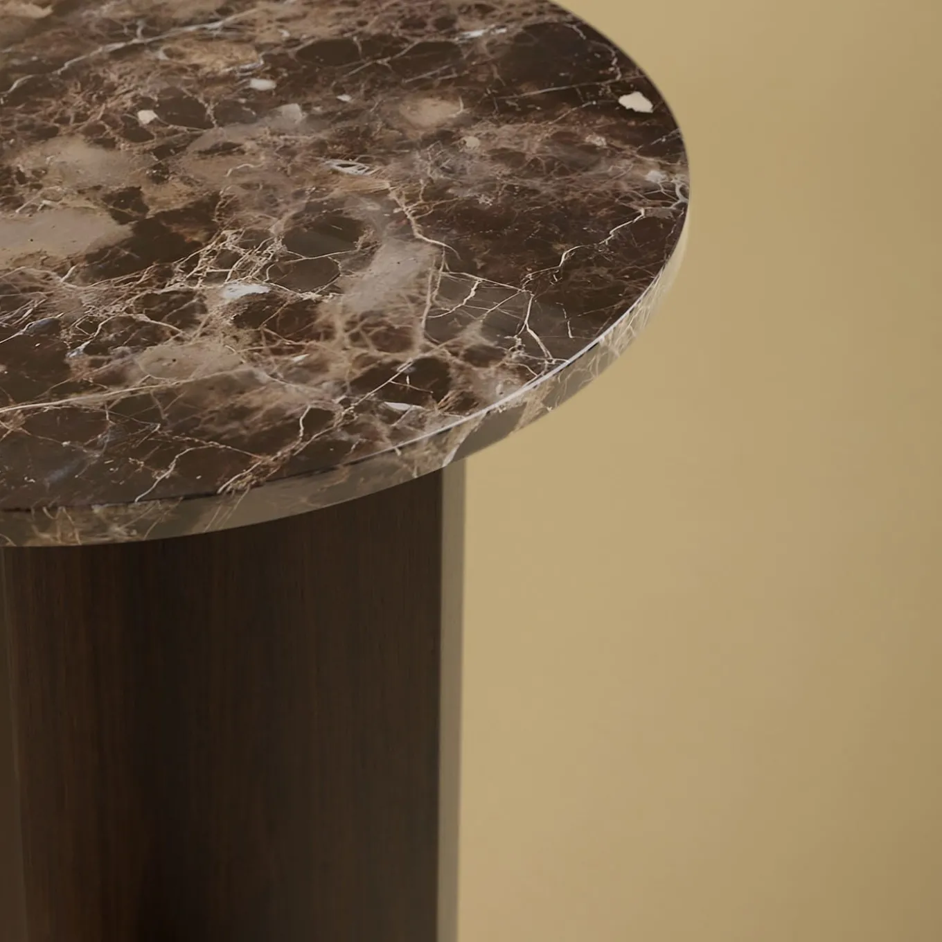 Combining natural elegance with artisanal craftsmanship, this Sherman side table features a luxurious Emperador Dark marble top with rich brown tones and intricate veining. Its solid oak legs provide a warm, durable contrast, making it an ideal choice for modern or classic interiors. Whether enhancing a living room, bedroom, or office, it offers style and function, showcasing refined Italian design. For further details, please contact the Concierge.