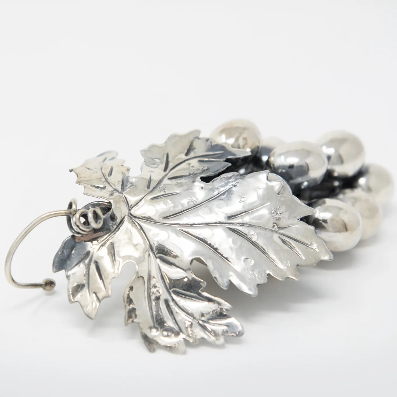 A decorative piece that will certainly please guests who receive it as a party or wedding favor, this small bunch of grapes fashioned from hammered metal has perfectly round little grapes and a single leaf. A lovely decoration to put on display.
