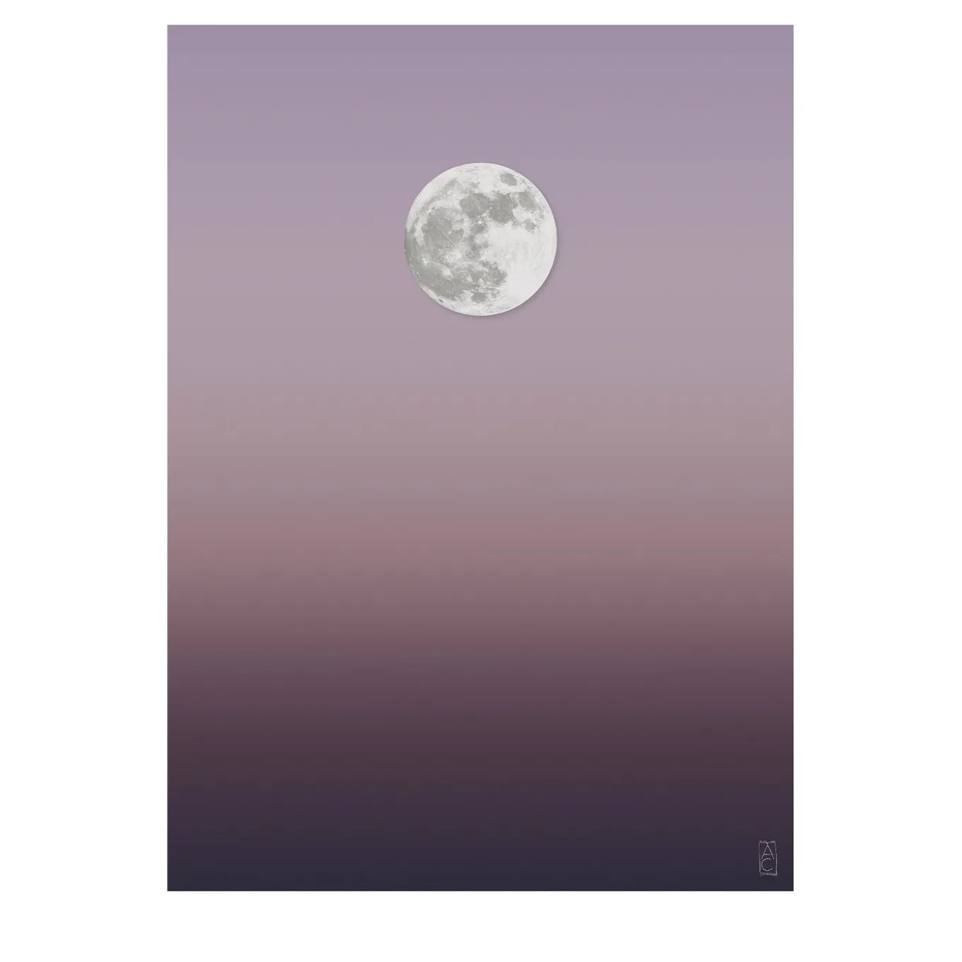 The line “Che fai tu, luna, in ciel? dimmi, che fai, silenziosa luna?” by poet Giacomo Leopardi inspired this evocative glycée-type print on 100% cotton canvas. A luminous, moon-shaped silver plate is impressed on a backdrop of shaded mauve, a dreamlike image that is poetic in its questioning allure. Please consult the Concierge for the frame option (on demand) and the variant measuring 50x70cm.