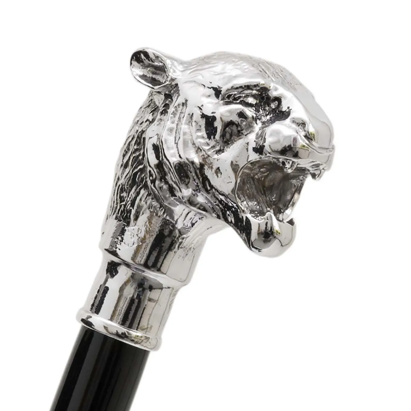 Pasotti has chosen all the most classic animals to feature on the handles on its canes. This cane is for those who love tigers. The cane is 92 cm longs and is composed of a black wooden shaft with a brass and rubber tip and a silver-plated resin handle in the shape of a tiger head.