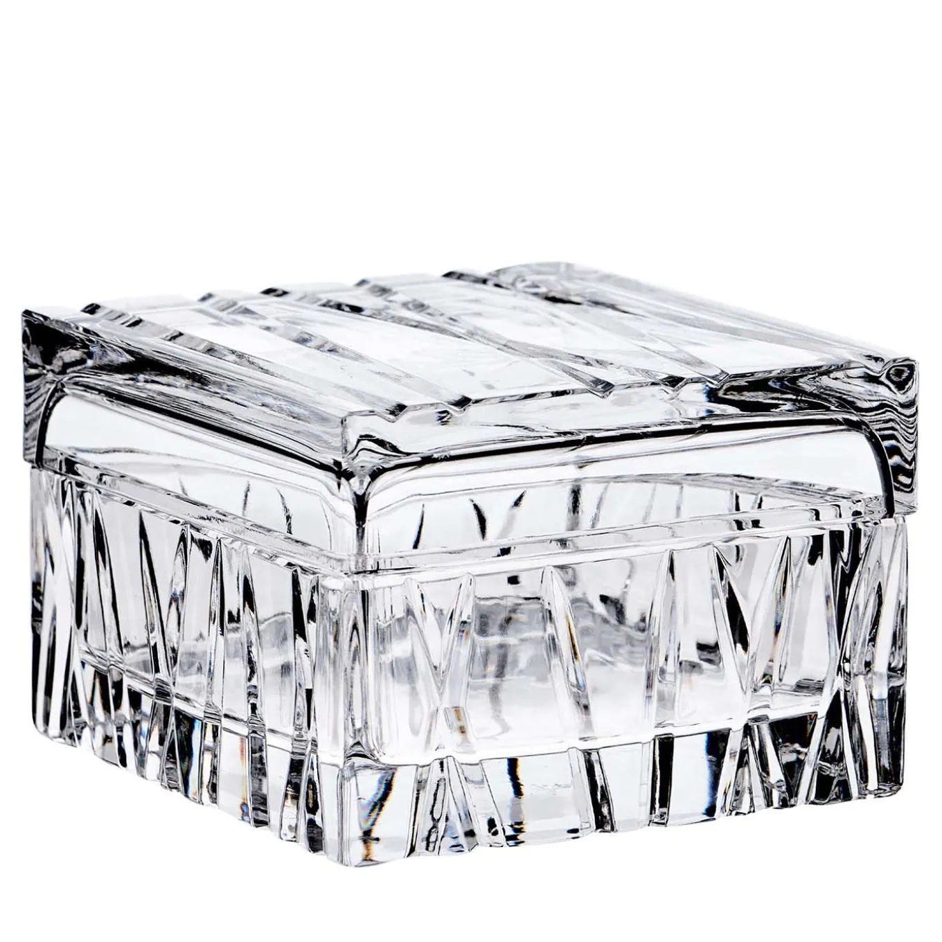 Cotton pads or jewelry essentials will find an utterly refined house in this small version of the Skyline box. Crafted from prized, transparent crystal, its minimalist geometric design is enriched with a pattern of intersecting grooves that create a specific texture on the sides and lid that favors a better grip. Mario Cioni conceived the designs from this series as a pamper able to contribute to the user’s wellness.