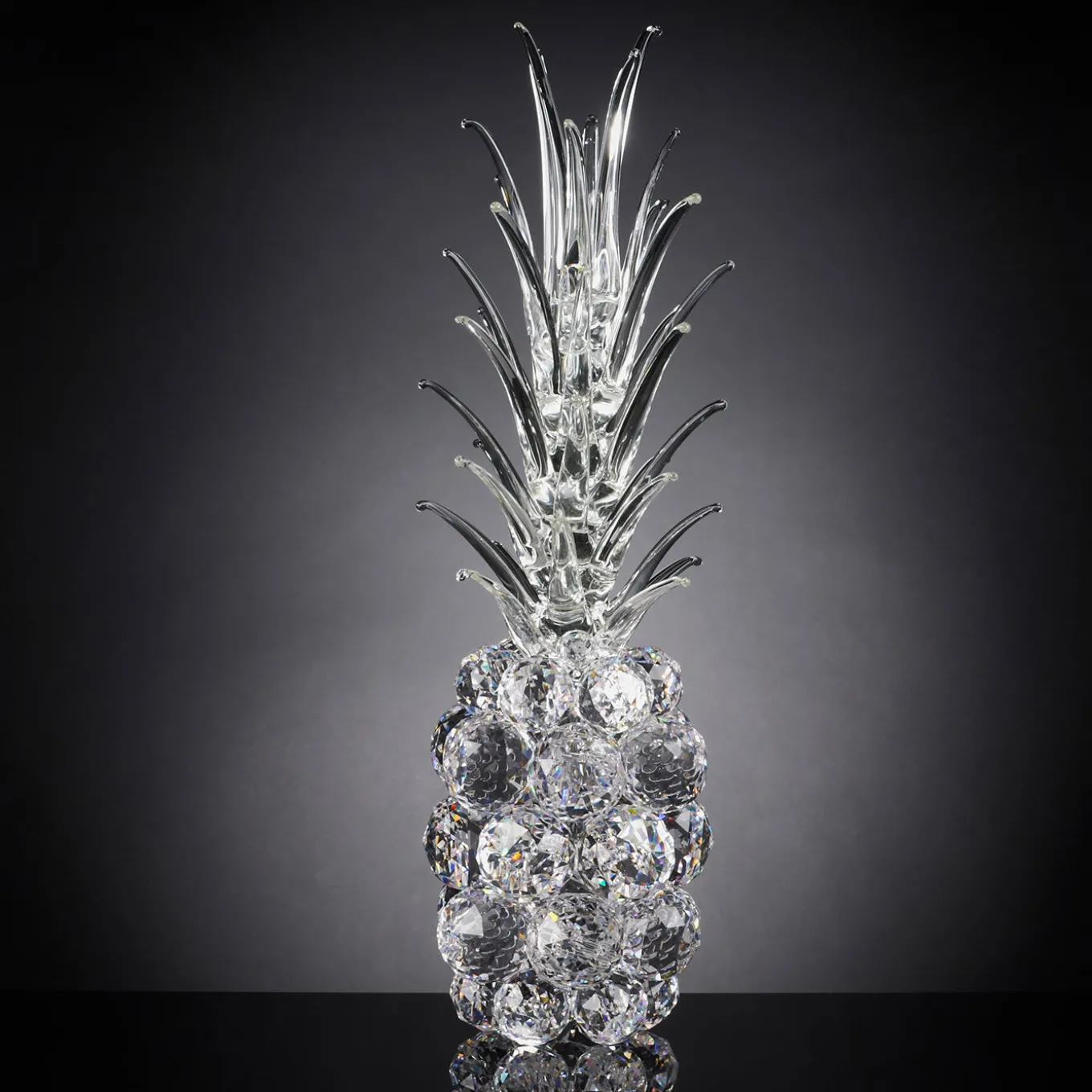 A striking showcase of craftsmanship, this charming pineapple-shaped sculpture will be a lively and appreciated addition to a modern interior. Entirely handcrafted of fine crystal by expert artisans, it flaunts a captivating interplay of shimmering and transparent hues.