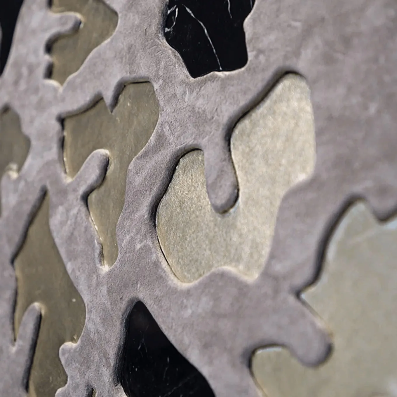 This panel merges contemporary art with artisanal mastery, featuring a giraffe crafted from soft suede bovine leather, set in Black Marquinia marble. The three-dimensional technique gives the giraffe a sculptural presence, with its spots made from marble and gold-laminated leather, creating a dynamic interplay of materials. The gold foil detailing reflects light adding richness and depth. A statement piece, it suits both minimalist and classic interiors, with an easy, secure installation system.