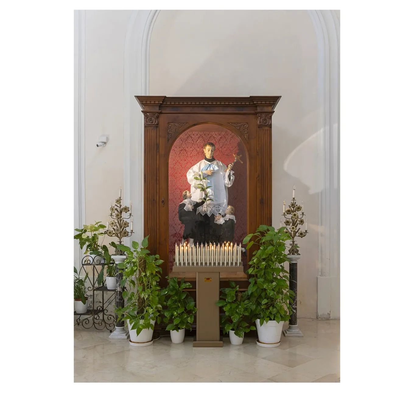 The St. Louis of Gonzaga Statue is located inside the Church of Saint Domenico in Nardò, South Italy. The statue is kept in a movable walnut niche dating back to the twentieth century. This is a limited edition of 5. Frame not included.